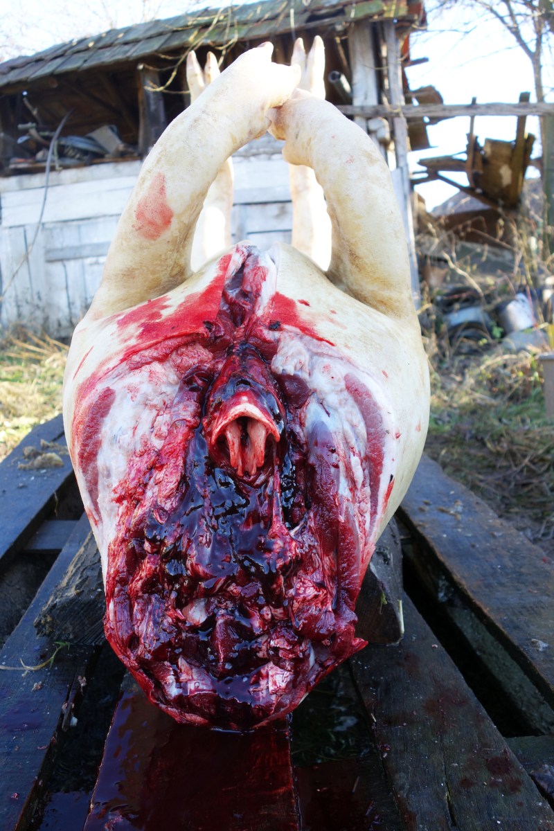 15 Published January 5, 2015 at 1500 × 2250 A headless pig is a gruesome sight but vibrant in color for sure.