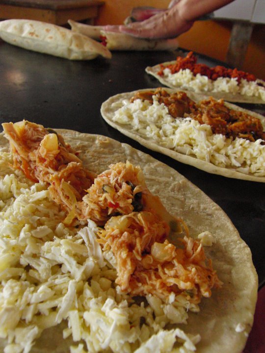 Nothing beats actual Mexican tacos, fresh flour tortillas, filled with perfectly spiced, home-made scoops of shredded chicken or strips of beef, pressed by gentle, caring hands onto a burning hot cast-iron surface.