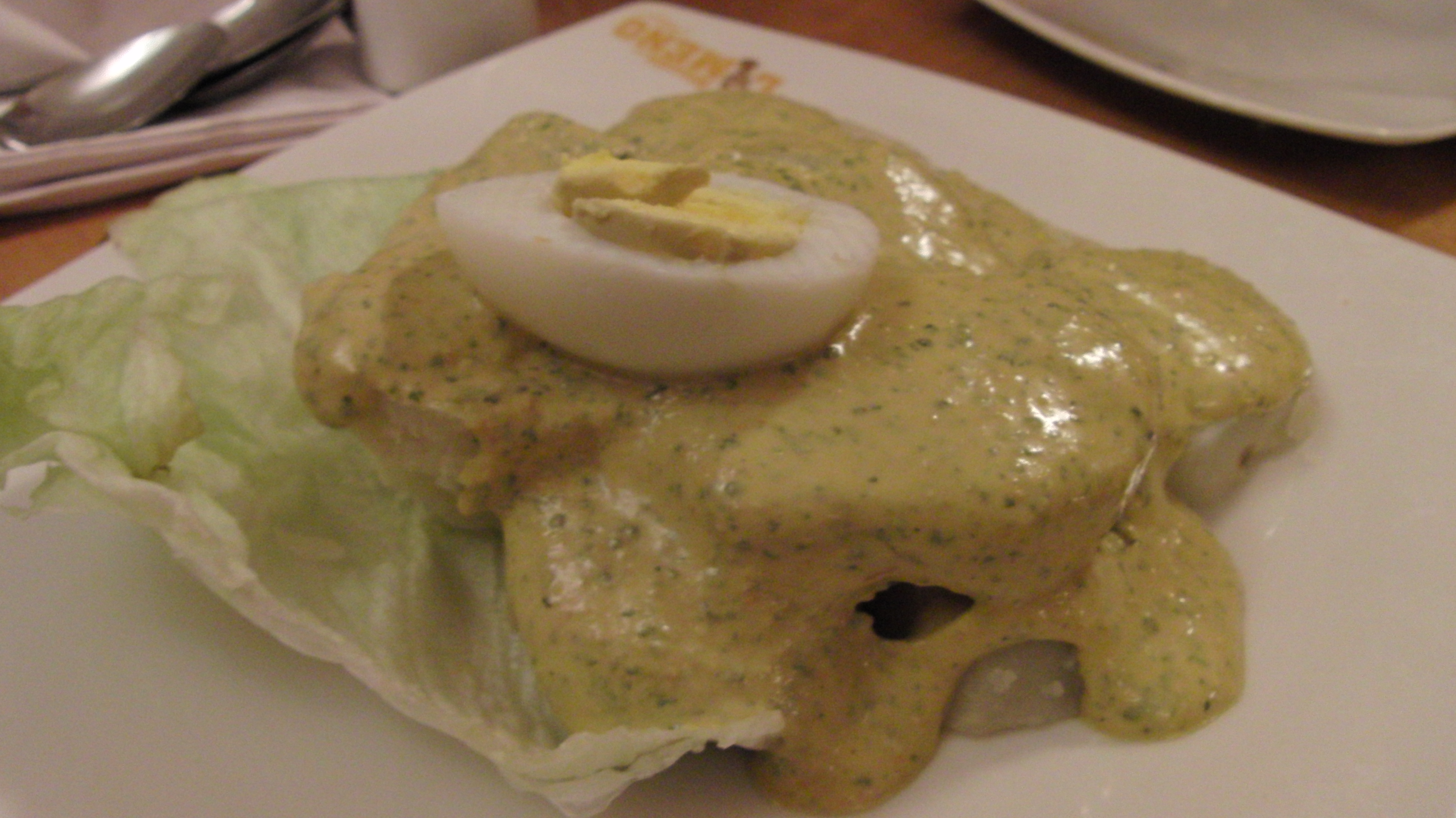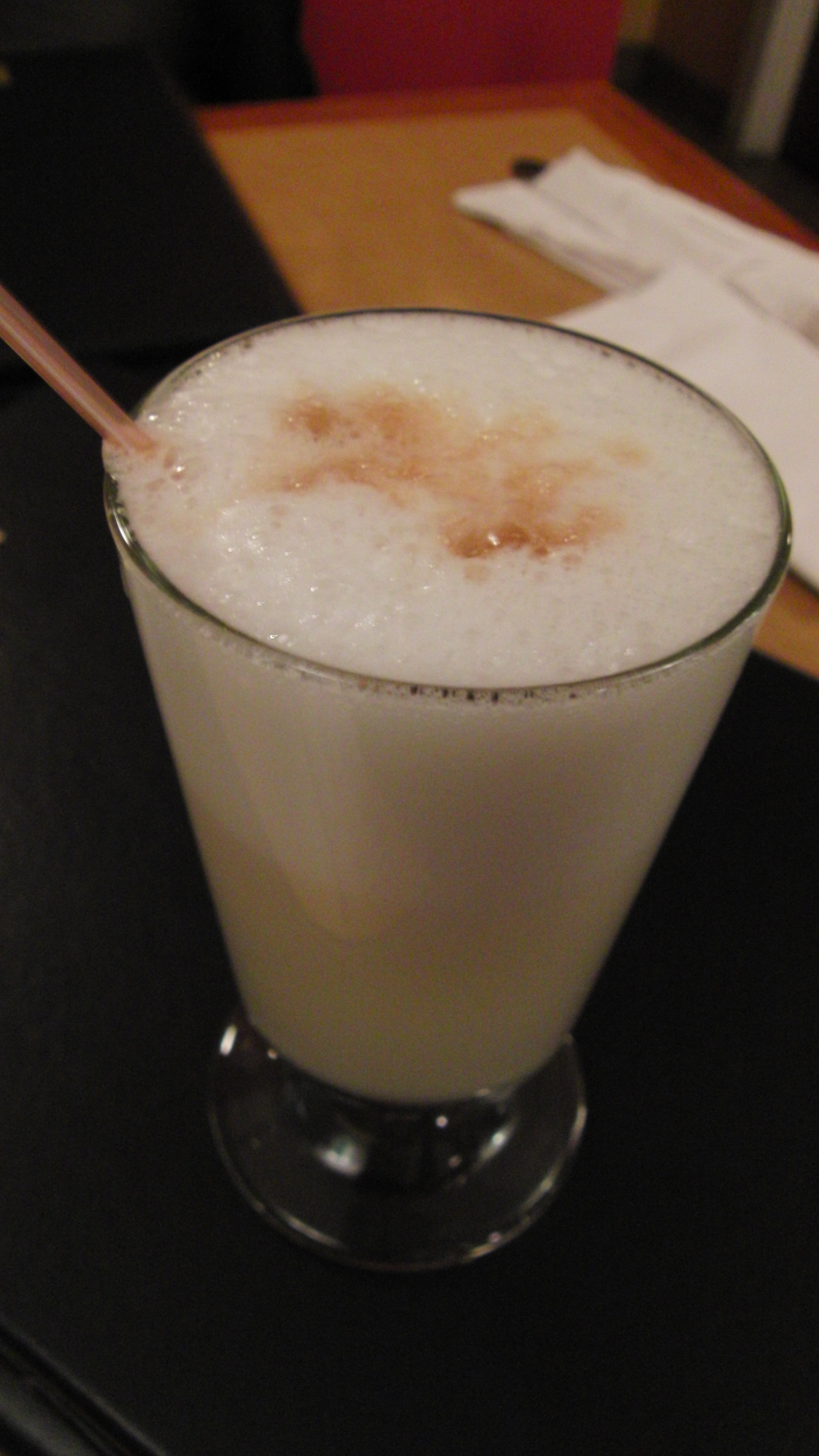 And now onto what causes such hang-overs…the notorious pisco sour. A combination of pisco (a grape brandy I grew especially fond of during my stay in Chile), lime juice and raw egg whites to make it frothy (don’t worry about salmonella, folks, the 70 proof hootch in this drink is every bacterium’s worst enemy). I didn’t really care for this particular Pisco Sour because I lean toward Chilean brands while this one was made with Peruvian pisco which is a bit funkier tasting. However, this drink is so hard to find in Boston that seeing it on the menu definitely put a knowing smile on my face, a smile noticed and reciprocated boldly by our Peruvian waitress.