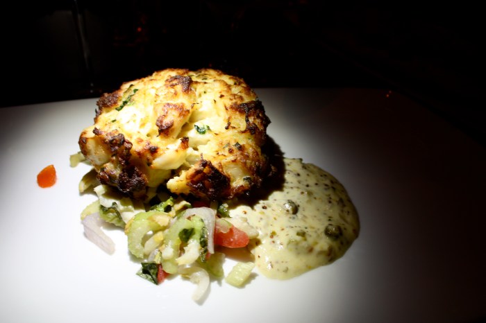 The crabmeat was deliciously plump and flavorful, although the crab cake as a whole wasn’t as great as I expected it to be. There was nothing to hold the pieces of crab together and the lump of meat was a bit dry in itself. The roasted pepper remoulade was a pretty tasty combination of flavors, although it did not add much moisture, which was lacking in this dish. The cake could have also come with a bit of salad or something to contrast it in flavor and texture (eg: provide a fresh, cool counterpart to the warm, filling crabmeat).
