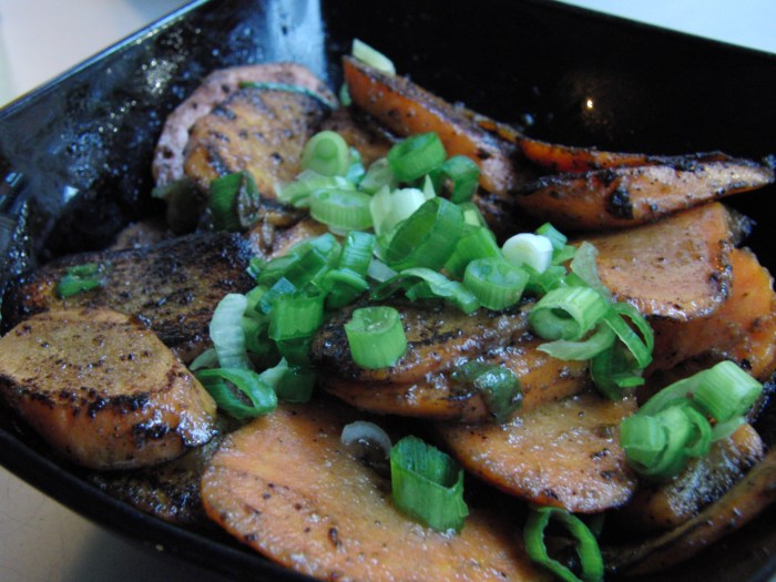 A fantastic dish and one I’ve never had before. Only slightly cooked (but maintaining a phenomenally fresh, crisp bite) and blanched carrot slices rubbed in slightly smokey, sweet and comforting red miso-based glaze. I would definitely recommend this side!