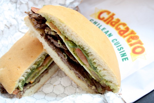 I met an old friend yesterday for lunch to catch up on life and we decided to finally check out what all the Financial District hype about this place, Chacarero, was really about. We talked about boyfriends, studies, jobs and our future in the 20 minute long line that seems characteristic of the place (no one getting into the line seemed surprised at the length of it). The Chilean register guy who greeted us at the front talked me through what to get in that Chilean twang only comprehendible by those who have lived (and drank) in the country – apparently I overlooked this amazing sandwich while living in Santiago. Boy do I wish I hadn’t…