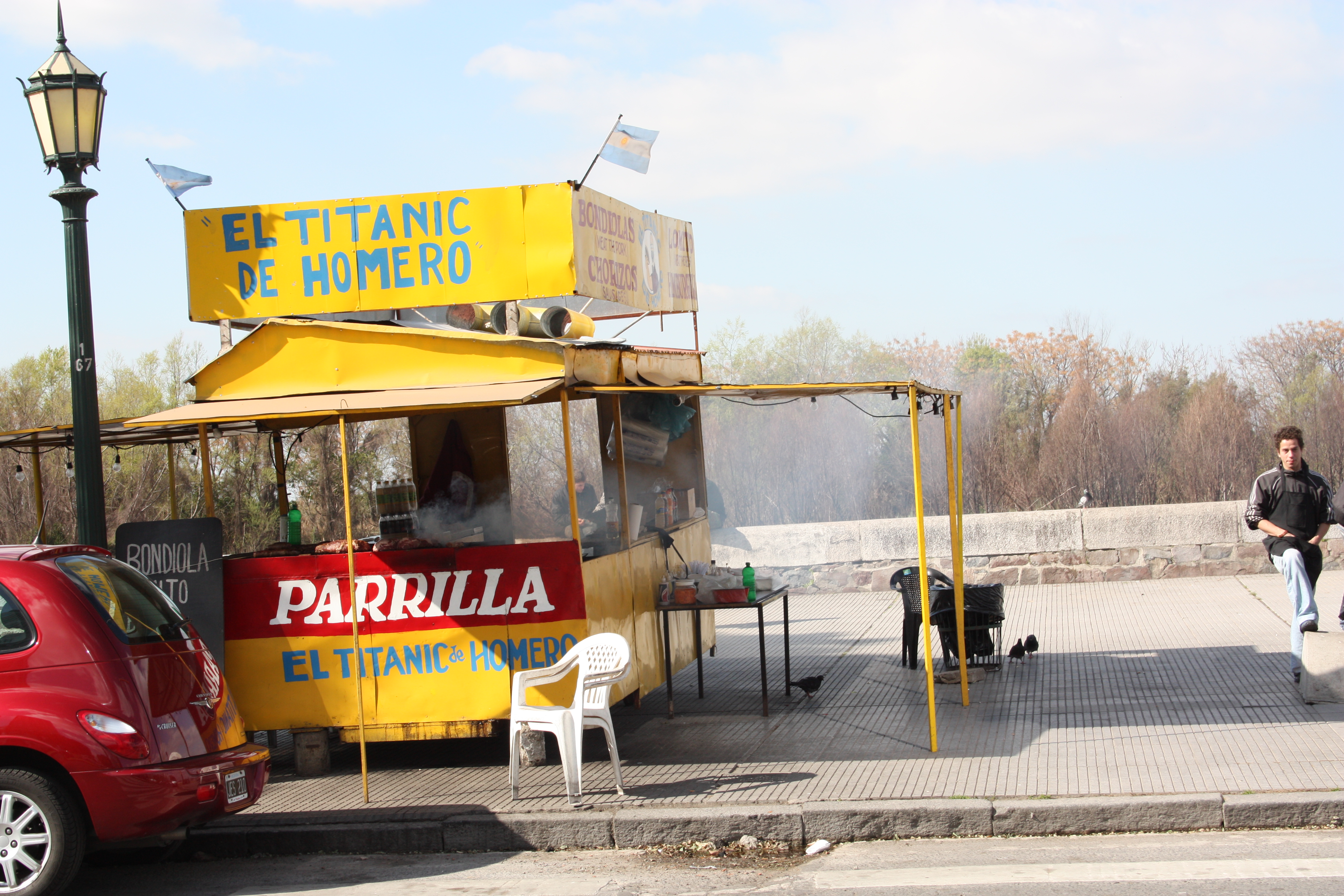 A 15 minute walk from my classes in El Centro is the picturesque waterfront barrio of Puerto Madero and not far from it is this avenida lined with yellow box-parrilladas with oh-so-fragrant charcoal smoke tumbling out the windows. It’s a place where men of both working and business class grab a fistful of napkins and roll up their sleeves to enjoy a lomito de bife, a hamburger or a bondiola and the incredible sauces they come with.