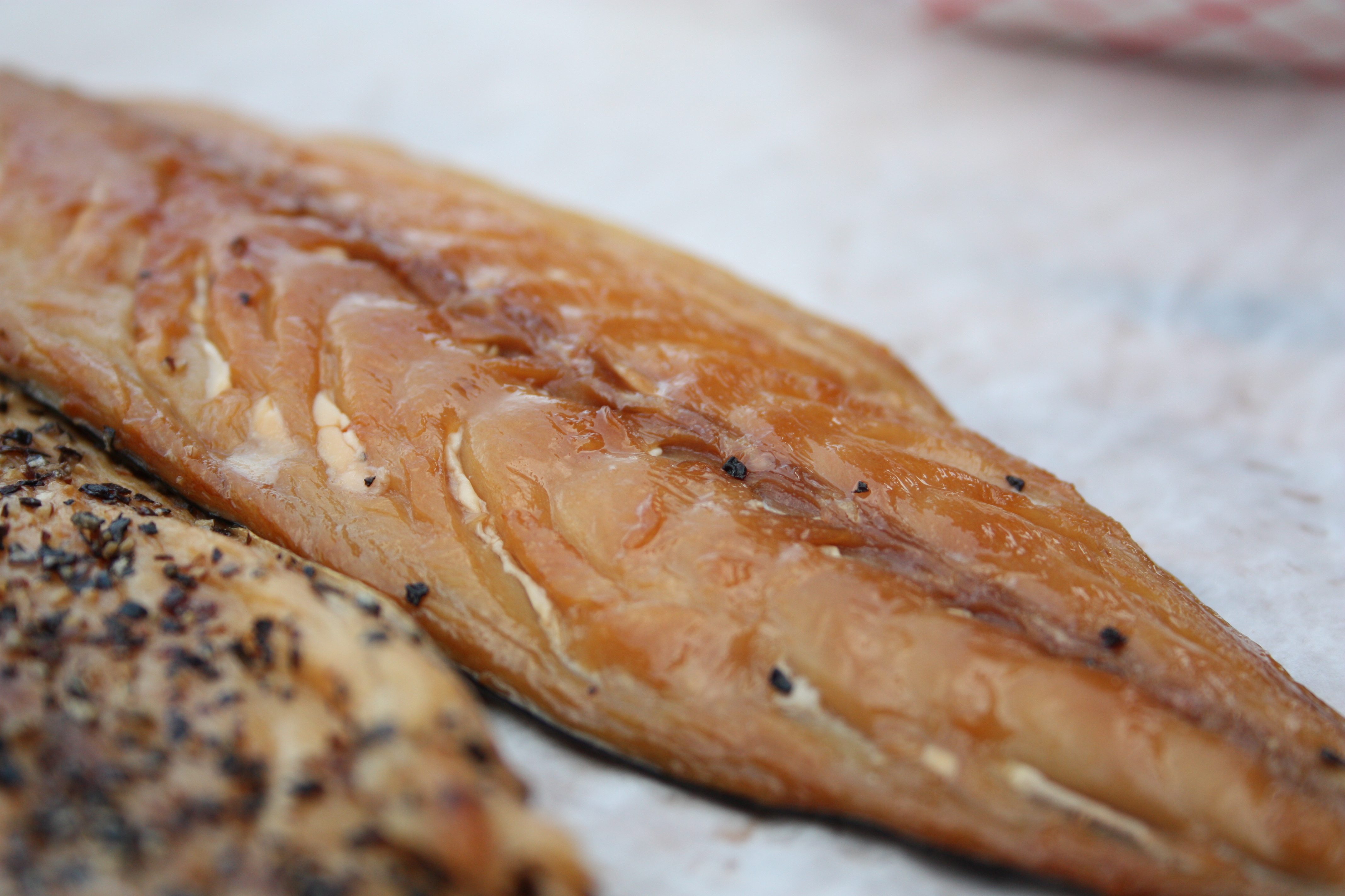 Oily, thin slivers of deep smokey light brown mackerel topped (if you so wish) with a crushed near-whole black pepper crust, slid off its skin with a wooden 2-pronged fork-morph and dipped in a horseradish-sour cream sauce. I recommend bringing with you a loaf of crusty sourdough from a local bakery, spreading the mackerel on top and letting the bread soak up the delicious smoked fish oil.