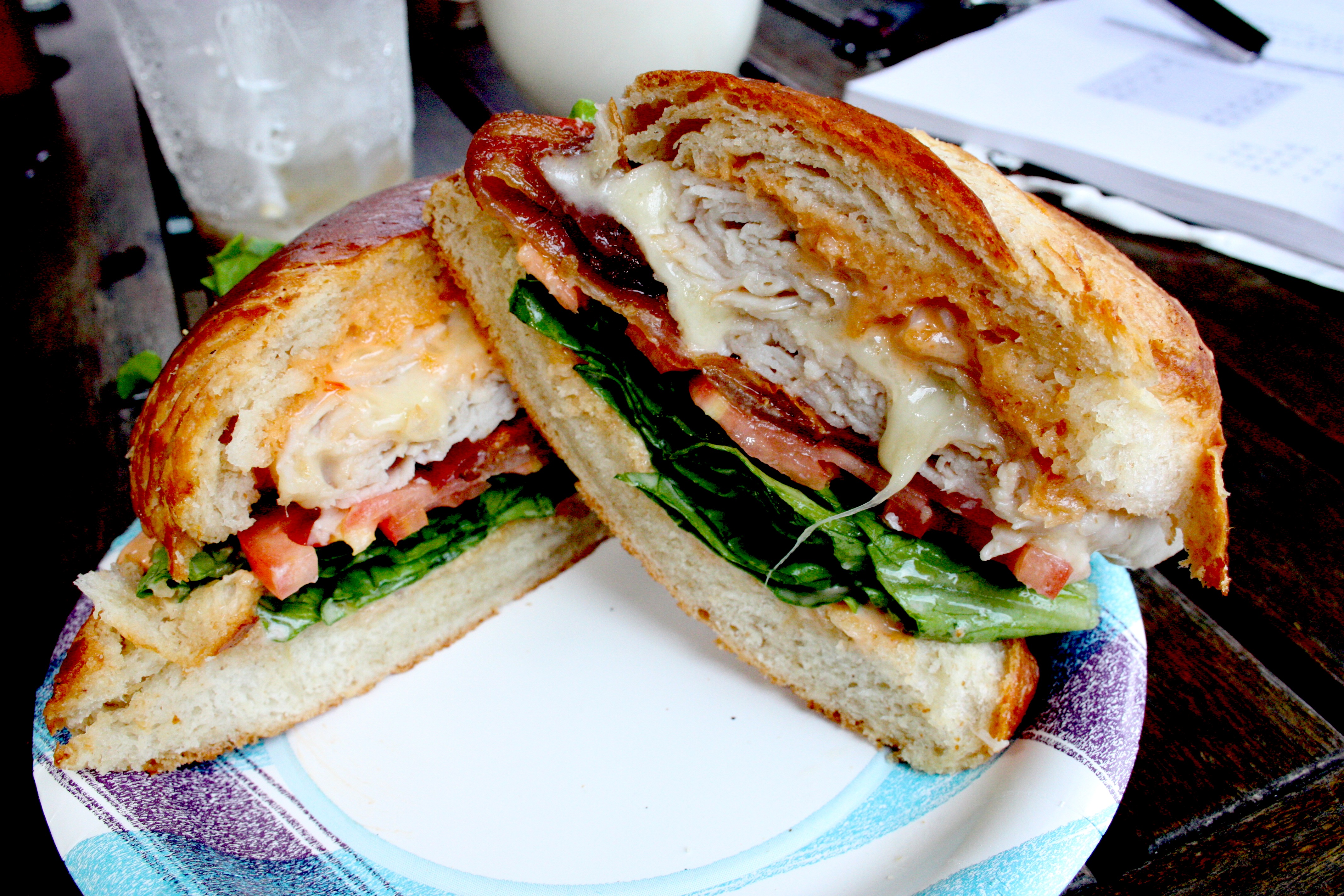 BLT on steroids. Bacon, lettuce and tomato with smoked deli turkey, Swiss cheese and delicious tangy Russian dressing. The croissant held the whole thing up beautifully without becoming soggy (as I said, more of a bread then a pastry…). The crispy bacon went beautifully with the velvety soft turkey and the Russian dressing gave it the perfect amount of rich moisture.