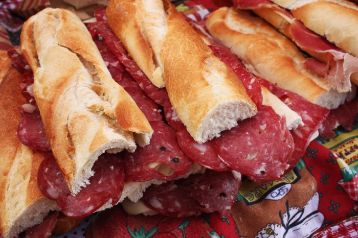 This is one of my favorites, a stand that specializes in 3 types of simple, meaty, condiment-free sandwiches: salami, salami con pimiento and some sort of cured, smokey ham. The operation is not a complex one; while one woman saws the fresh loaves of skinny French bread in half, the other layers on generous portions of that deli stuff and piles the sandwiches high to lure in hungry customers. It’s probably true that I could easily find these ingredients and slap together my own version of this sandwich at home, but its the interaction with the women that counts here, the proud “yeah, you know you want it” smiles, the enthusiasm with which they describe and let you try bits of each cut before making your decision on which to order.