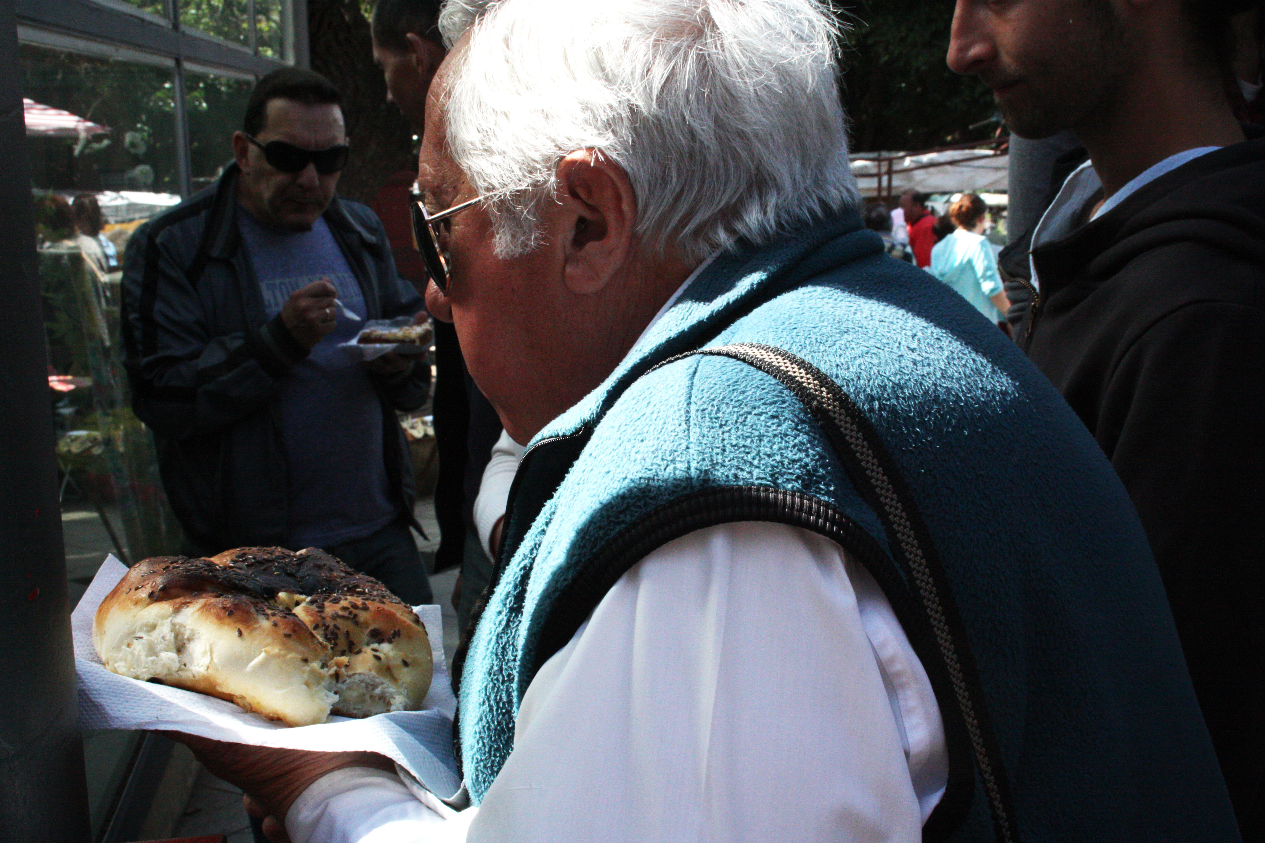 Agonizing in bed, watching Adam Sandler movies on stream and beating yourself up about mixing champan-speeds, beer, whiskey and cosmos instead of just sticking with fernet-cokes all night is definitely one way of dealing with a hangover. Pulling yourself together and hopping down to the Recoleta Feria near Plaza Francia/Centro Cultural de Reco/Reco Cemetery is another, in my opinion better, way. Street performers (such as the weird Michael Jackson doll-guy and the all-too-popular silver man) wake up your senses, pretty colors spattered around the feria in the form of artisanal throw pillows and mates soothe them. And those spidery-looking back-scratcher devices so popular in BsAs markets definitely feel good when applied to an aching body. But what heals your uneasy stomach and pounding head is the street-food all around, the smell of charcoal, the sizzling of sketchy but delicious meats, the sawing-sound made by a serrated knife when passing through a fresh hunk of crusty bread. And of course, the knowing, forgiving smiles that come with the food help too.