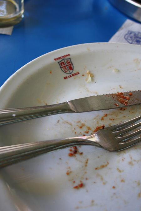 Simple, comforting, cheap. Although the place has obviously seen better times, the quality of the food has, no doubt, been maintained since then. I don’t really venture down to The Mouth often as I am impartial to the Boca-River rivalry and I openly detest the touristy falsities of Caminito, but if I find myself around there again, I will definitely stop by this place for a slice. Until then I will stick to El Cuartito…