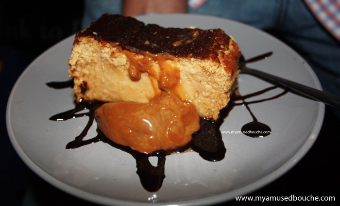 I don’t even really know why I decided to get dessert, as I was already more than satisfied by the time that last juicy corner of pita disappeared down my throat. Maybe it was because I was just not done with the place yet, and needed to see all it can offer. So, hopelessly uncool in going against the grab-a-quick-small-bite etiquette of the place, I convinced my stuffed companions to share two desserts with me. One of them was this guy – called a budin de cielo (“heaven pudding”, or something similar)- which, frankly, I had to get just because of that name. Lord, was it delicious. An airy, light, spongy coconut flan, caramelized and crisped at the top, drizzled with very dark chocolate sauce (contrasting its naive sweetness very well) and served with a side of enough icky-sticky dulce de leche to take a quick bath in.