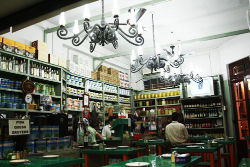 So I decided to take them to a place I have heard referred to as “one of the best milanesas in town” by many, a little old Palermo eatery called El Preferido Palermo. I have only been here one other time and I remember getting some sort of pickle plate and beers. Needless to stay I skipped over the milanesa list real quick. The place is kind of famous, apparently Borges himself chilled in here. The main gimmick is that it was originally a Spanish almacen in the 50’s and was only later converted into a restaurant, but it retains the old-school shelves stocked with dusty bottles of olive oil and wine, cans of eels, tomatoes, beans and olives. This is the type of place grandpa sent little Timmy (or Carlitos, I guess) for some jarred pickled cow tongue and a packa smokes, where the grumpy but kindhearted and winking shop-owner gave the kid a gum-ball, where the kid tipped his hat and responded with a “Jeez wiz! Thankyuh mister!” But in Spanish…. you get the idea.