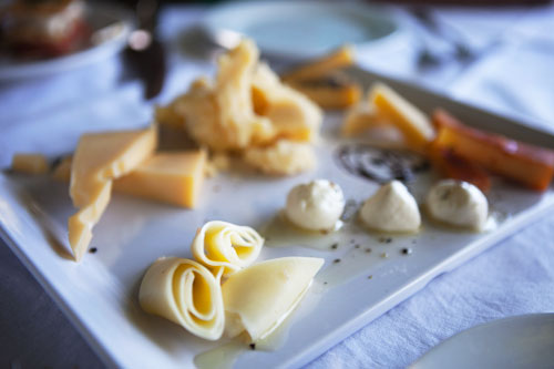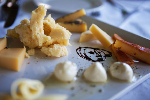 Next came a showcase of Narbona’s charismatic house-made cheeses: Thin slices of velvet-soft, slightly smokey (almost pork-y) mozzarella curled up into bite-sized ribbons. Melty, flavorful but not too sharp, porous colonia served in triangular Swiss-like shape. Aged and aromatic provolone with a nice herb crust on either side. Adorable little bumps of crumbly, dry bufala with a sour twang reminiscent of a sheep milk cheese sitting in a speck of that deliciously smooth olive oil, dusted with cracked black pepper with a swirl of reduced balsamic nearby to give it a bit of extra depth. The highlight for me was the hearty, rustic, asymmetrical and un-carved chunks of aged parmesano, poignant and nutty in flavor, crumbly and very light in body. The parmesan also appeared in a feisty red smoked pepper dust coating as well as in a plain triangle, no doubt to show the versatility of this cheese.