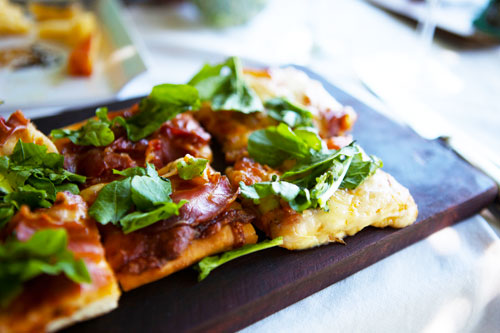 Time stops. You can’t seem to remember what day it is and you don’t really care anyway. Your mind is shaken clear of deadlines, of meetings, of money and what fills the newly vacant space is an overwhelming appreciation for everything around you and a pointed attention to the detail in those things. Rays of gentle sunshine hitting and melting against the back of your neck while a cool breeze licks them off your skin. The healthy green of grass and leaves, the tired, languid blue of painted wood, the intense plum-purple of freshly-picked grapes nearby. Early afternoon white-light dancing around the edge of crystalline wine glasses, the practiced and graceful bend with which the woman fills these with crispy-fresh blonde. The cozy-warm and comforting smile of your companion, the bored glances from a very spoiled collie dog. The clean, open-air silence periodically interrupted by the happy chatter of nearby strangers which grows feint as your senses zoom in on what has just been placed before you and goes altogether mute when you take your first bite.