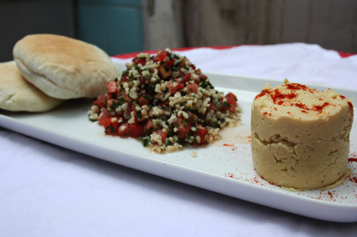 Smoked baba ganoush dusted with paprika, fresh tabbouleh and home-made hummus served with pillow-fluffy, fresh-out-the-oven pita bread. She’s truly conquered the Middle East with this deliciously healthy spread.
