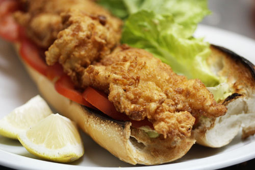 This is a fried Merluza po’boy she prepared at another Office Takeover Tuesday which I tried a bit of at the end of the night and which was wonderful. The fish was flaky, the creamy white flesh incased in a perfectly golden and crispy fried batter. A bit of tomato and lettuce, on toasted french bread. Delicious.