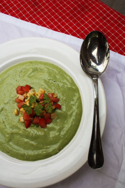 This is her spicy avocado tomatillo gazpacho. It’s as just as refreshing and yummy as it looks. Made with super-fresh ingredients, including Liza’s home-grown tomatillos from her chili garden. It made for a delightful lunch on a hot summer day.