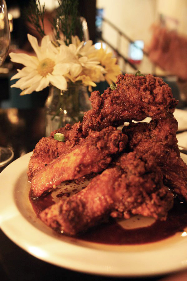 His double-fried chicken wings/drumsticks are also wonderful. Crunchy, perfectly golden brown and relatively thin batter encasing tender and juicy dark meat. The light sauce drizzled over the top and sitting under the chicken, ready to be dipped into, was delicious. A subtle caramel-like sweetness, a bit more fresh ginger, hint of soy or something equally smokey/savory. There could have been a tad more of the sauce (in a separate bowl) because after the first bite I not only wanted to douse each wing in the stuff, but fill my pool with and swim in the stuff.