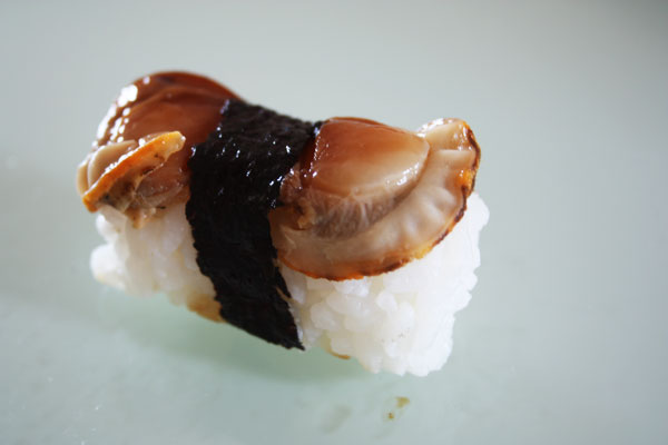 Scallop. Again a bit too soft which made me suspicious, bordering on paranoid. But not that bad when bit into. Slightly gummy, a bit flavorless but an interesting texture.