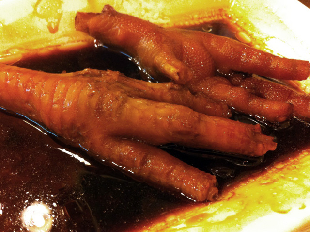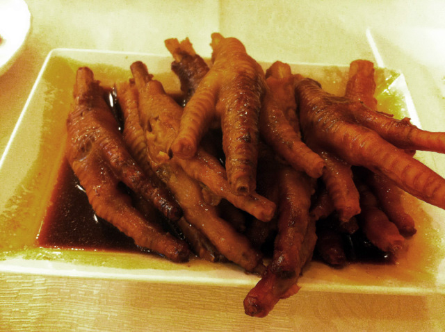The first GOOD…nay, AWESOME… chicken feet I’ve had in Hong Kong, a dish that made me understand the tremendous popularity and demand for these bad boys on this side of the globe. I think the main difference between these and the ones I’ve tried and did not really care for in the past was that this one was warm and served in a delicious sauce instead of having been chilled and pickled. Chilled and pickled chicken feet, while sometimes pretty refreshing in the summer time, leave a disturbingly cartilage-y crunch as an echo on the teeth while the skin is reminiscent of a goose bumped slab of cold, harsh rubber. When cooked, however, this delicacy completely changes its tone and becomes hands-down delicious. This one was deep fried and then steamed (to puff them up a bit) and then simmered in a wonderful soy and fermented abalone sauce which had a fantastically deep, slightly briny, sweet and salty flavor and permeated the skin, giving a great flavor and a beautiful golden brown color to the feet. The texture of these feet, far away from their cold, crunchy, cartilaginous counterparts, was soft and comforting. The skin, thin fat, and tendon- y inside of the limb had melted down a bit and become delightfully sticky and soft, akin to warm, steamed rice-paper cover of a steamed dumpling, except deliciously fatty from the skin and flavorful from the sauce. Some of the phalanges were small, soft and surrounded by cartilage enough to chew through, which I did, and they provided a nice crunchy base to the otherwise soft, sticky and mushy exterior.