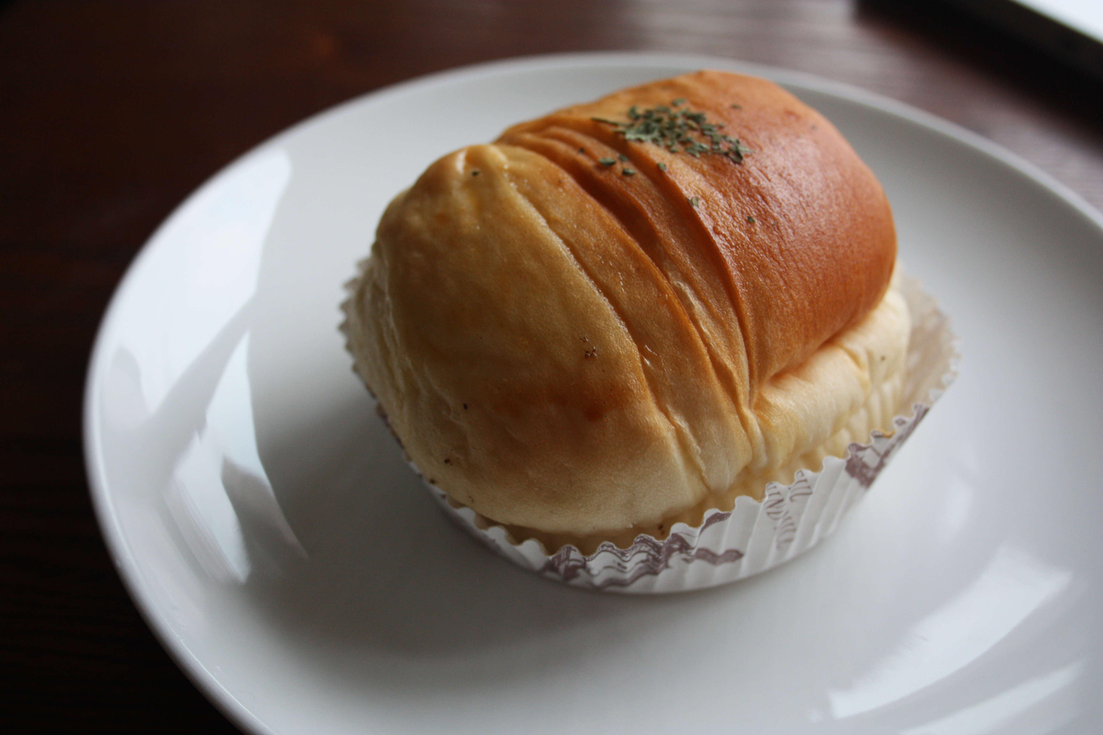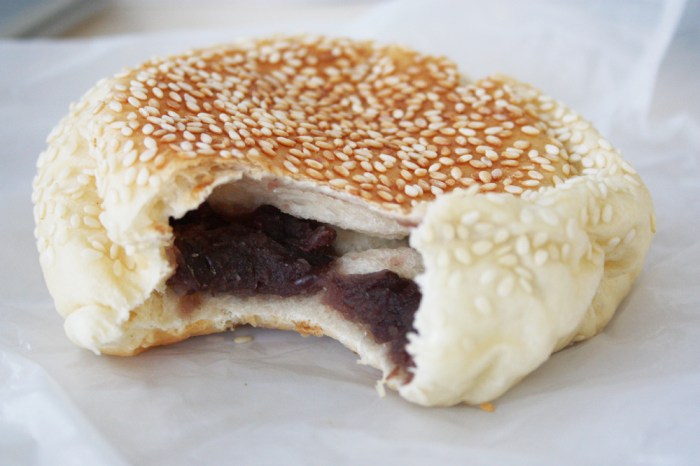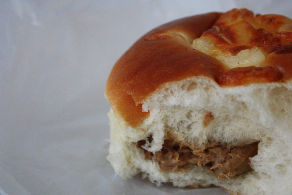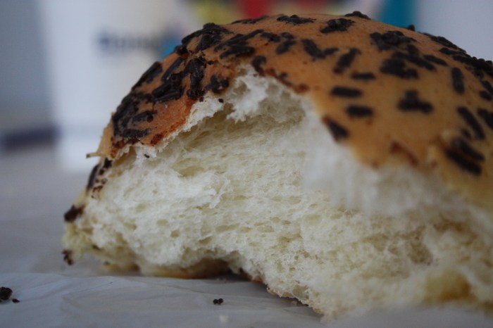 Chocolate Milk Bun. This is my breakfast pretty much every morning now, whether consumed at home or taken to the office to eat with my office-coffee. The bun is coated by a firm, crunchy cap which is scattered with chocolate jimmies, giving it a mild but not too overpowering chocolate flavor. The inside is heavenly soft and airy like a pillow. VERY slightly sweet and otherwise pretty yeasty in flavor. I’ve heard that these are delicious toasted with a bit of butter and condensed milk poured on top. I shall try this version soon to see.