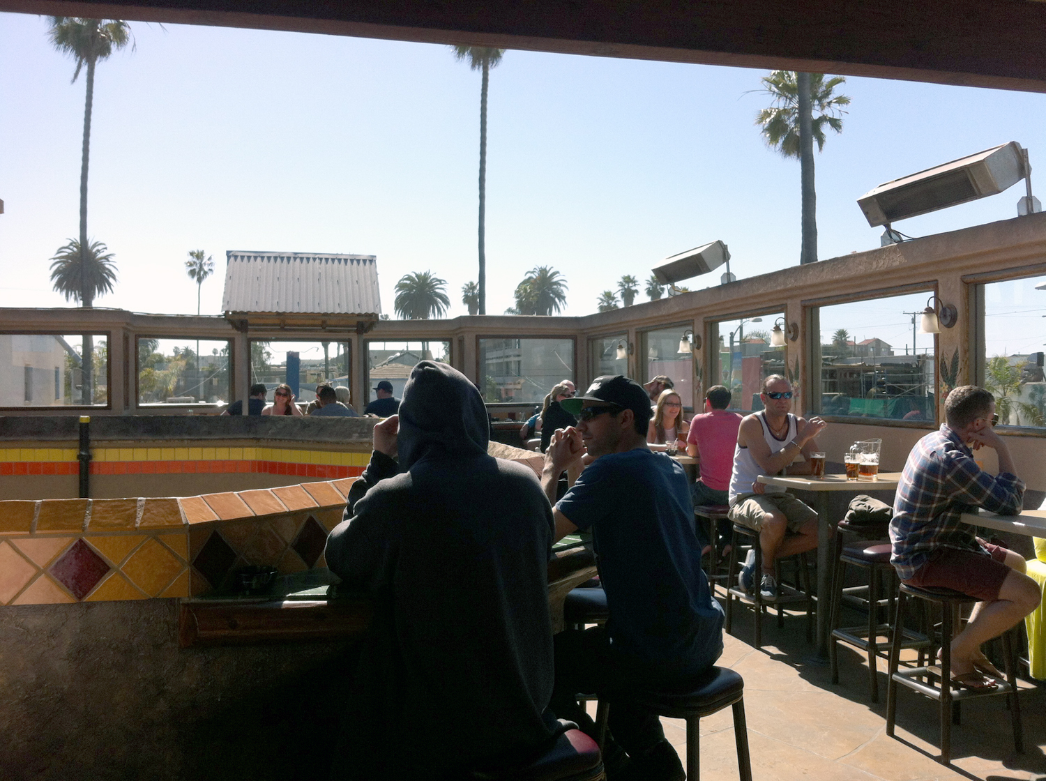 Desperate for warm rays of sunshine and the sound of crashing waves, my first day in San Diego found me walking around Ocean Beach, looking for a bite to eat. My guide and lunch companion had a few too many recommendations to choose from – some famous taco shacks, an over-hyped and Fieri-frequented burger joint, some pizzas pahlahs and microbreweries.  It was one of those moments when I needed a scene first and foremost, one of those very rare occasions where the need to actually feel what kind of environment I’m in outweighs the desires of my pampered belly. So I chose the bar with the rooftop hangout with a view of the street, good for people-watching and smoking my first $3/pack cigarette in months. To go with the latter, my first San Diego craft brew: the Ballast Point Yellowtail Pale Ale, a fruity, easy-going Pilsner-like thing ideal for sunshine and snacking. The place was called the Sunshine Saloon.