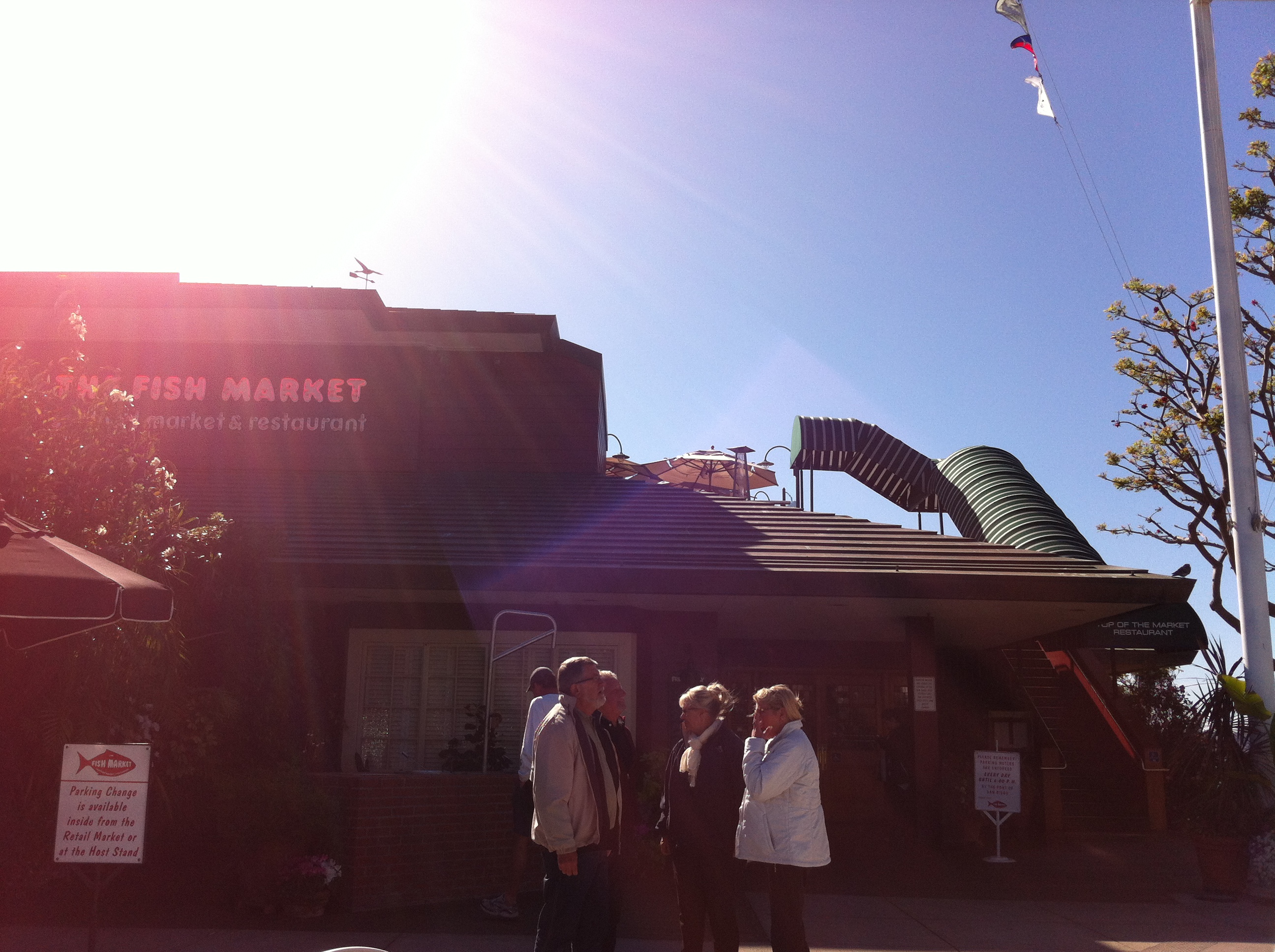 On my last day in San Diego my boss took me out for a leisurely, long lunch at one of San Diego’s monumental seafood-with-a-view restaurants, The Fish Market Seafood Market and Restaurant’s Top of the Market, overlooking the San Diego Bay. The market is basically divided into a ground-level counter, where passers-by can pick up some fresh, paper-wrapped fish and seafood, as well as some house-made chowders and dipping sauces. Surrounding the counter is a child friendly, family style eatery with large round tables and a comfortable, homey feel to it. A flight of stairs on the side of the building leads to the Top of the Market Restaurant, which spans the top floor and has a semi-outdoor deck area with more of a white linen, business lunch type atmosphere to it.