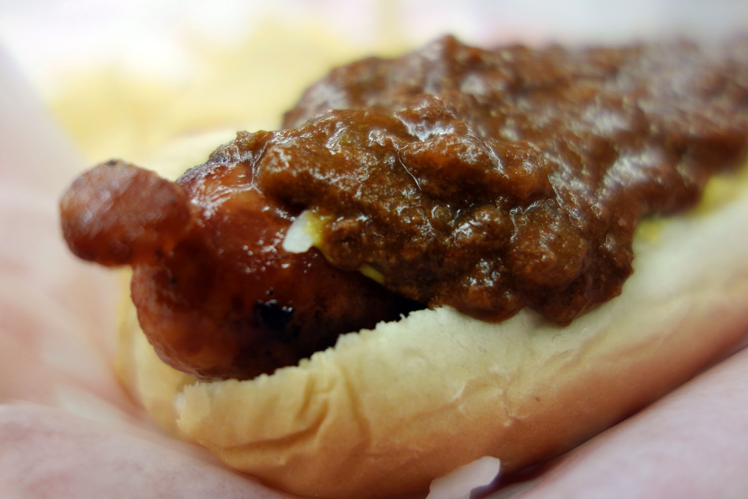When we did eventually get our Chili Half-Smokes (Bill Cosby’s fave), I was pretty excited about my second chance to taste and photograph the stuff – this time with my sporty little Carl Zeiss. The chili dog definitely impressed me more than the last time I had it, when I was satisfied but overall kind of “meh…” about the thing. This time, it really hit the spot.