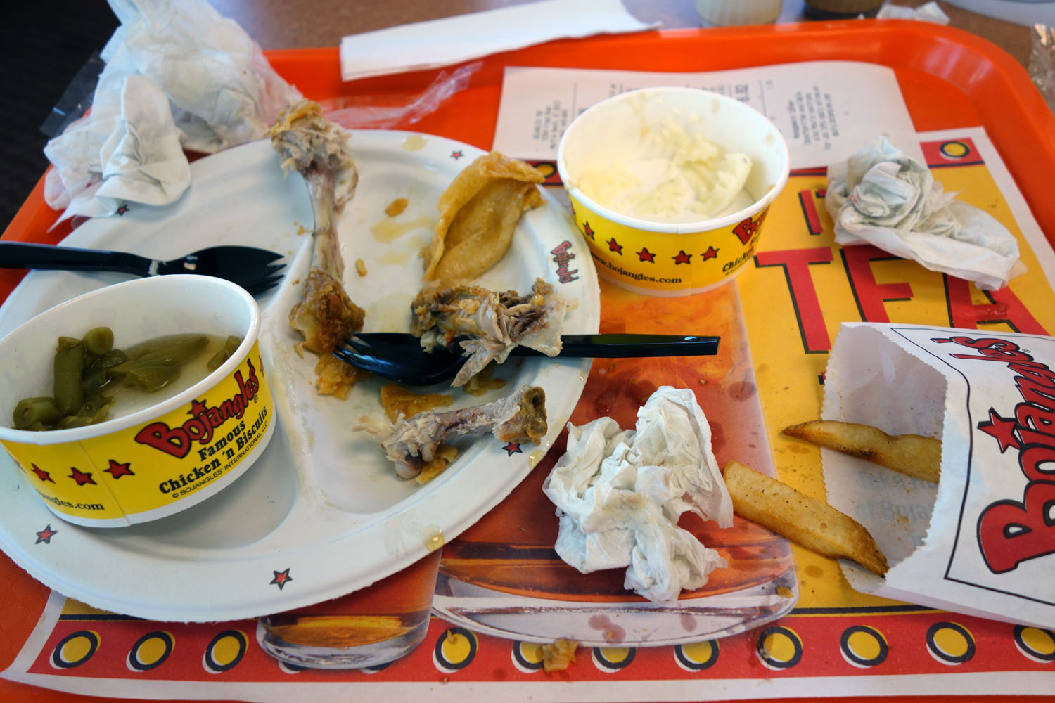The sweet black tea was…well…pretty sweet. My friend knew to mix the Bojangle’s Famous Sweetened with the Bojangle’s Famous Unsweetened to at least make it potable.