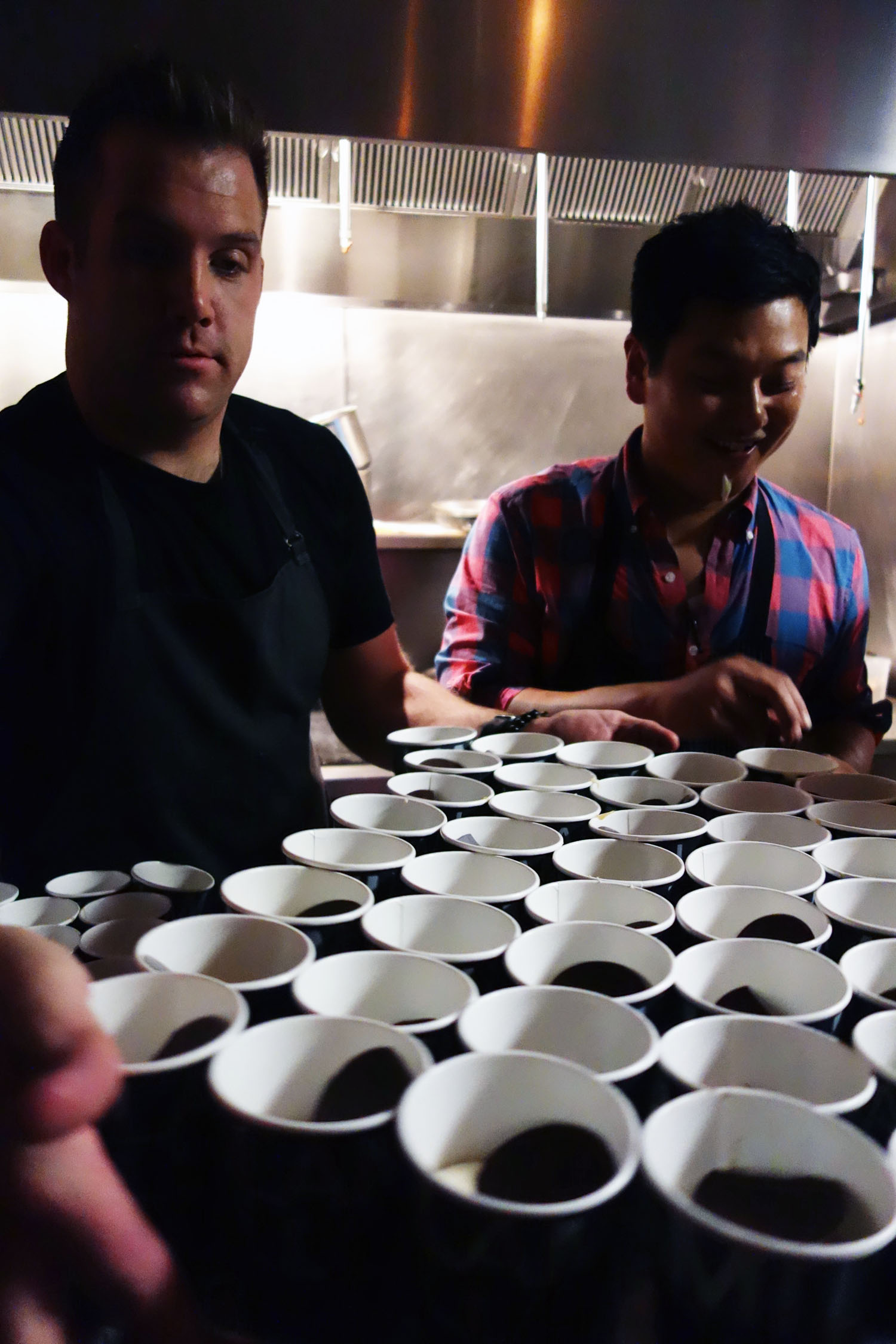 Dessert was really all about team work, with Jonah Kim helping Chris Ford dress his creations, little sundae-type things which, I think, were meant to emulate the Wit and Wisdom Sundae, which the restaurant’s dessert menu is known for. From what I could tell, this was a white chocolate custard/mousse/ice cream piped over a dense chocolate brownie, topped with cocoa nibs, a puck of chocolate and dusted with his signature pork fat peanut brittle dust. By the end of the night I was quite full, so I didn’t end up trying this, but I did see many contented faces on those around me who did. I expected nothing less of a signature creation by Food & Wine’s Best New Pastry Chef of 2012.