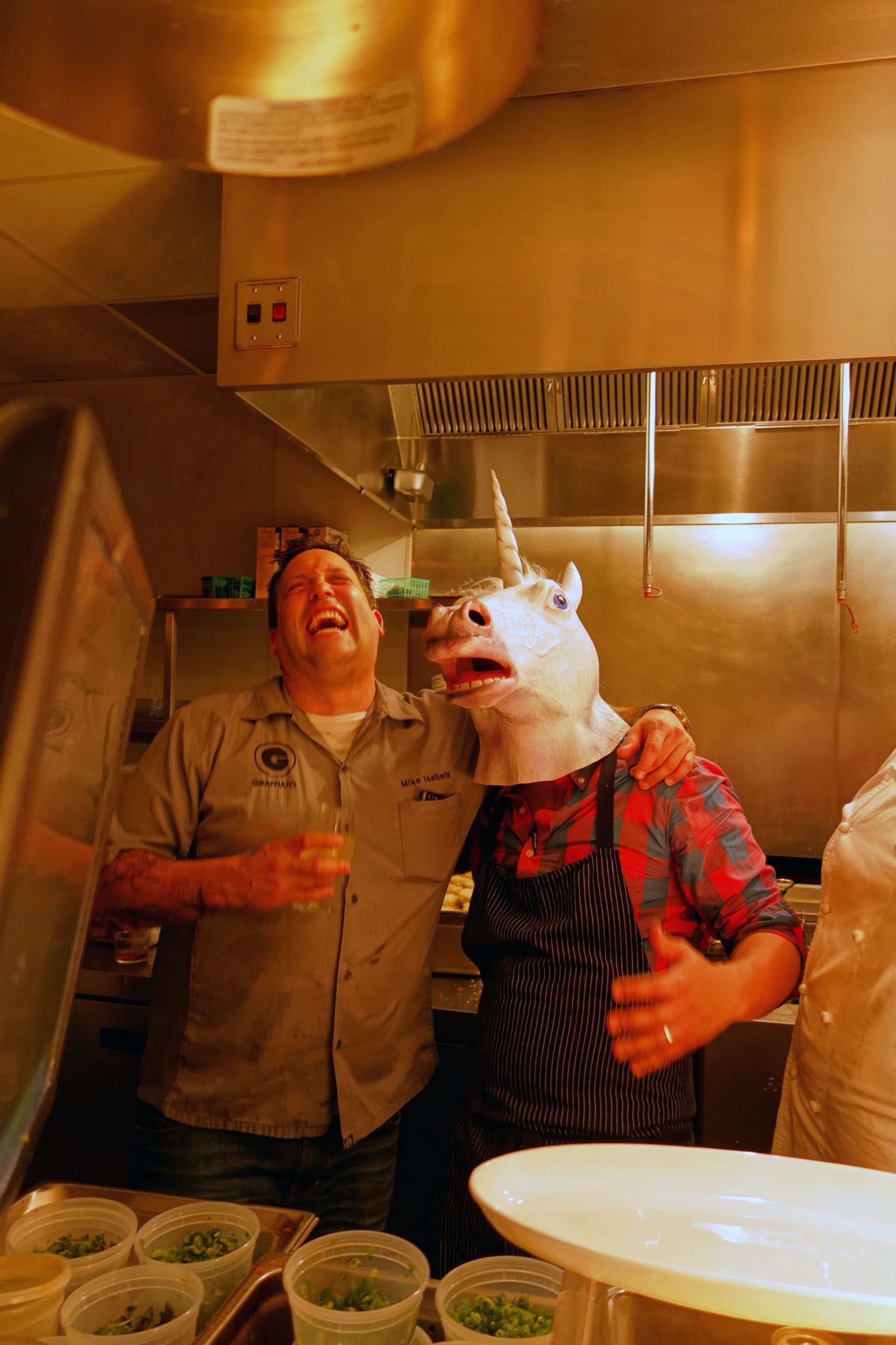 Just as in May, I had a great time at this month’s takeover event. The chefs seemed like they were genuinely having a good time, pulling silly pranks on each other, taking shots every once in a while and teasing each other like blushing schoolboys in a schoolyard. The counter was no barrier for their positive energy, their giggles crossing right over to crowds of happy eaters. The food seemed to be the stuff they themselves like to eat – pig parts on rice, comforting sticky noodles, crispy chicken. Nothing too fancy, though packed in flavor and immensely satisfying. It was nice to see the chefs themselves picking at the leftovers at the end of the night, pulling some onto plates for themselves and for the bar staff who had not had the chance to visit the kitchen the entire night and who must have been famished by that point. Good times all around. Kudos for Graffiato for making it happen!