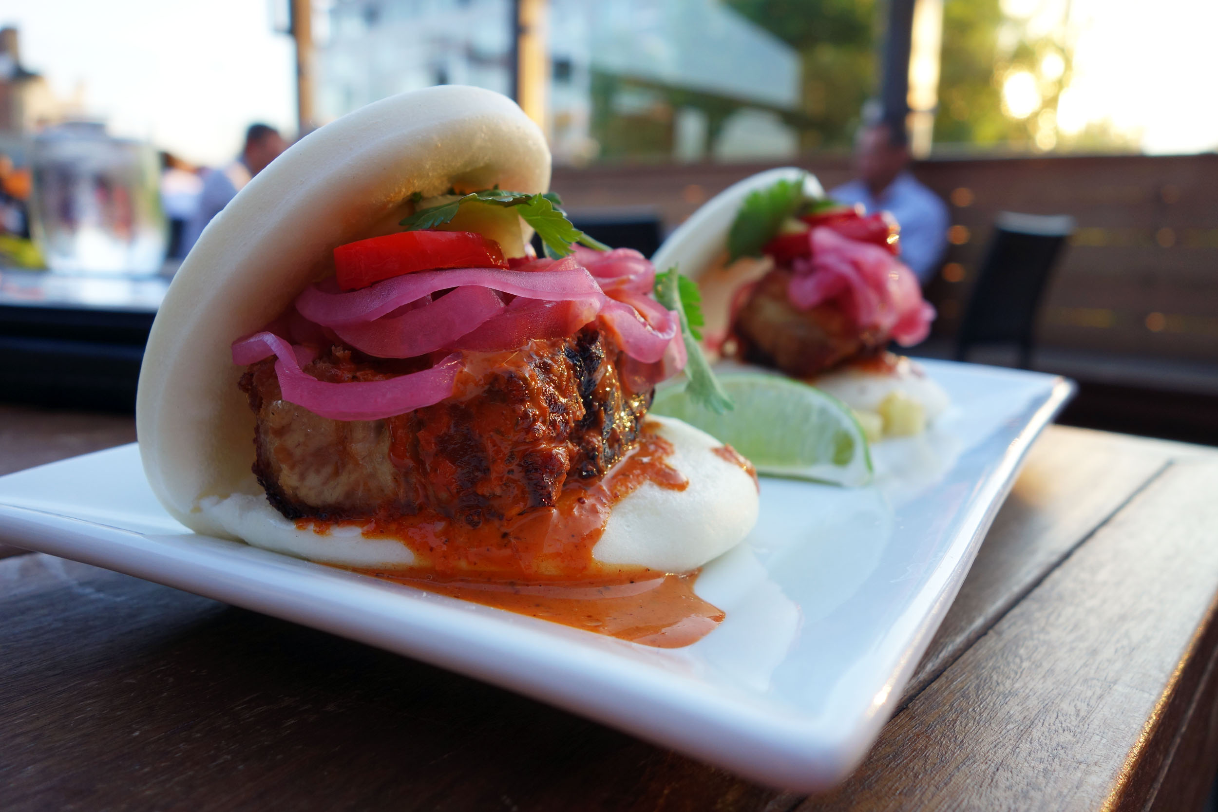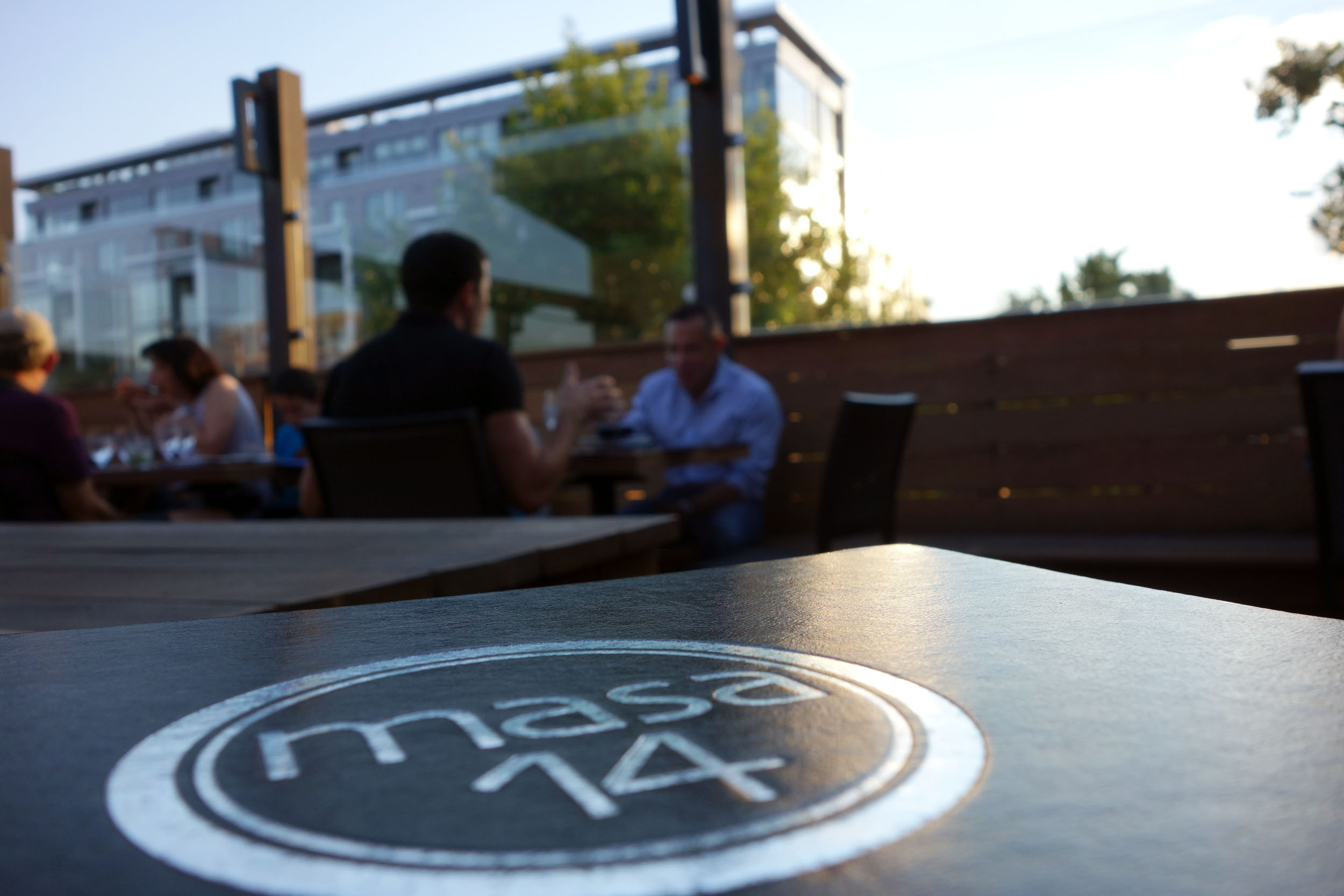 A great rooftop option for beating the crippling heat waves hitting D.C. this summer is Masa 14 in Logan Circle. A central staircase leads up from a spacious, chic, under-lit dining room to a long, elegant second floor bar. This opens to a roofdeck with a living wall of plants inclining upwards from the center, a leafy green display that gives the place its open, natural character. During Happy Hour, groups of smiling colleagues and friends sit around smooth wooden tables covered with wine-side snacks ideal for sharing. During dinnertime, highchairs are pulled closer together by couples, blushing dates happy to be brought somewhere with a view of the sunset.