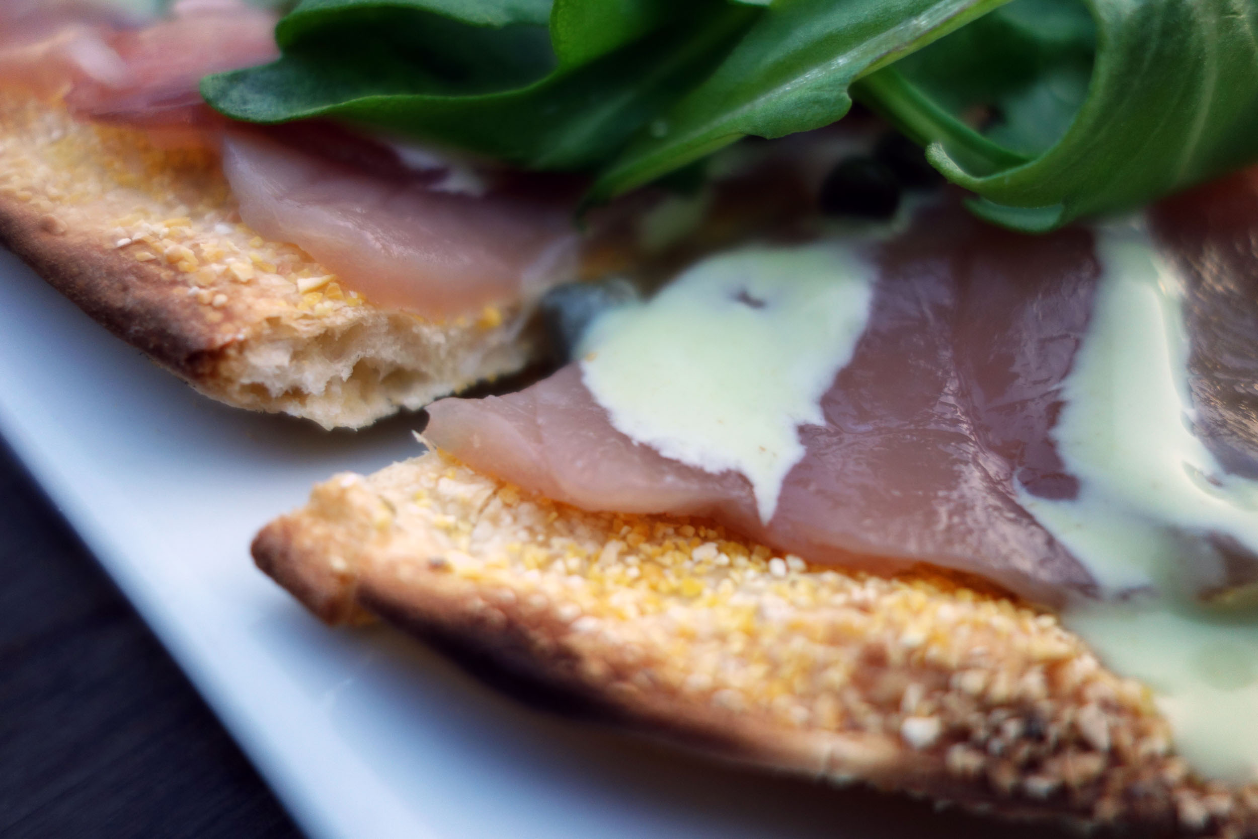 Out of the wood oven we tried the Tuna Sashimi Flatbread, which came drizzled with wasabi aioli and topped with fresh yuzu-splashed arugula, capers and red onion. Where I felt that the Cornmeal Crusted Oysters tried to do a bit too much in terms of flavor components, this dish kept it simple and fresh. A generous amount of slippery smooth and juicy tuna sliced thin and layered onto a humble wood oven fire flatbread crusted over with corn kernels. The contrast here was great – the moist, cool fish locked the crispy, coarse bread into a loving embrace and the ratio between the two was perfect. The wasabi aioli added a clean heat but not too much flavor. It opened up my senses, making them more conscious of the subtle sweetness of the tuna. The flavor punch came from the salty little pickled capers which were nestled between leaves of fresh, peppery arugula. The capers didn’t really clash with the wasabi as they just provided a base flavor to which the heat of the wasabi could be added. I did think that there were a tad too many capers on there, at least in some patches of the flatbread, which is probably why I couldn’t taste the yuzu too well. But otherwise, a great summer snack to share.
