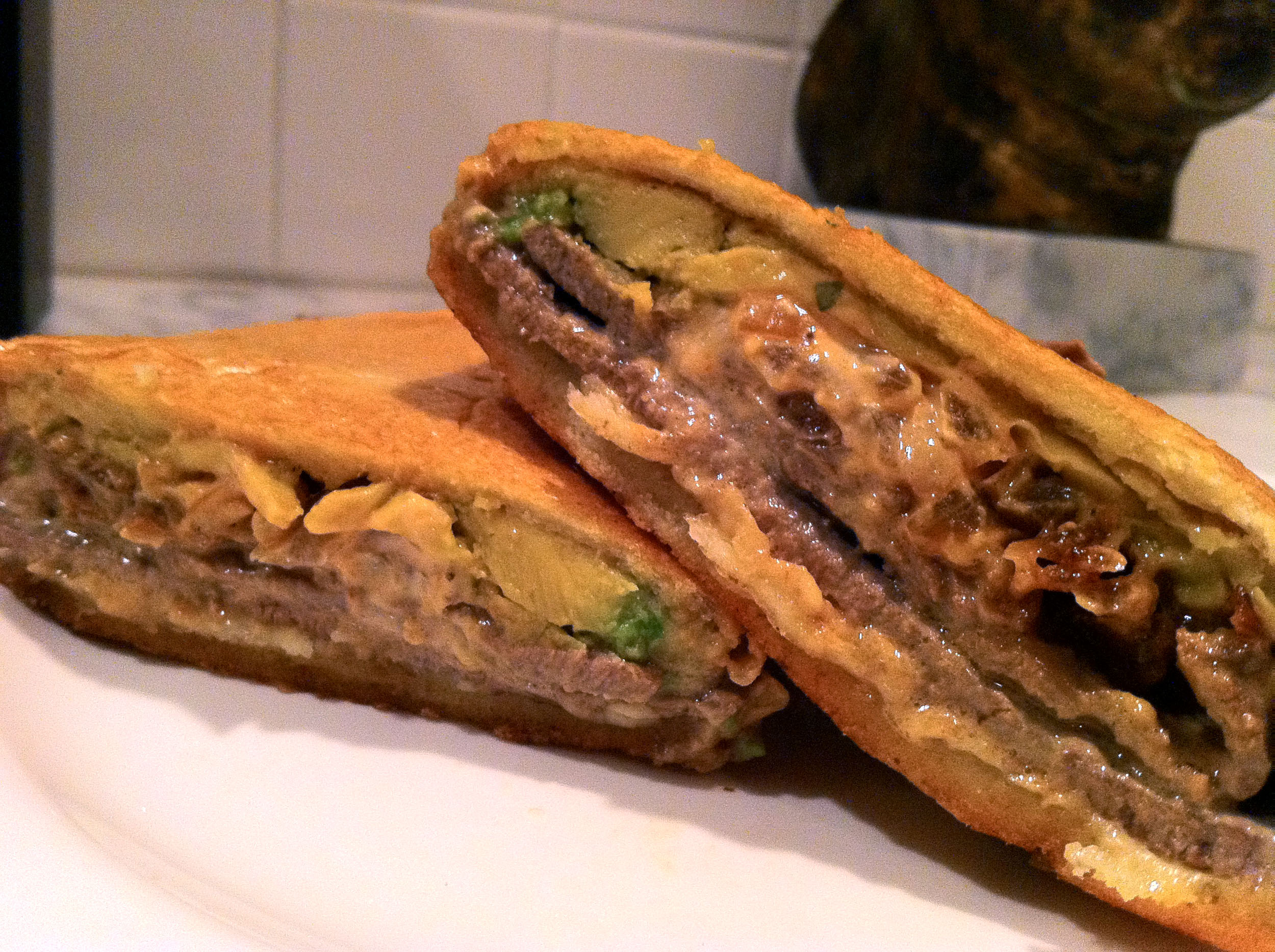 My friend also unwrapped a Bistec Sandwich which looked and smelled as amazing as it tasted. A pressed French bread sandwich with thinly sliced beef steak, caramelized onions, swiss cheese to stick it all together, avocado and garlic mayonnaise. The bread was crunchy and thin enough to let the filling shine. Perfectly ripe avocados added a buttery, mushy texture to contrast against the firm, lean steak, while the mayo hydrated the whole thing and bound together the pieces of onion. The favors were great too, peppery beef, a slight funk from the Swiss and a sweetness from the garlic mayo that was potent enough to make me think there was some sort of fruit or jam in there as well. My friends finally convinced me that it was the combination of garlic, creamy mayo and sweet onion playing a trick on my palate. Either way, it was a delicious sandwich with a good combination of moisture and crunch, flavored very nicely. A filling thing, for sure.