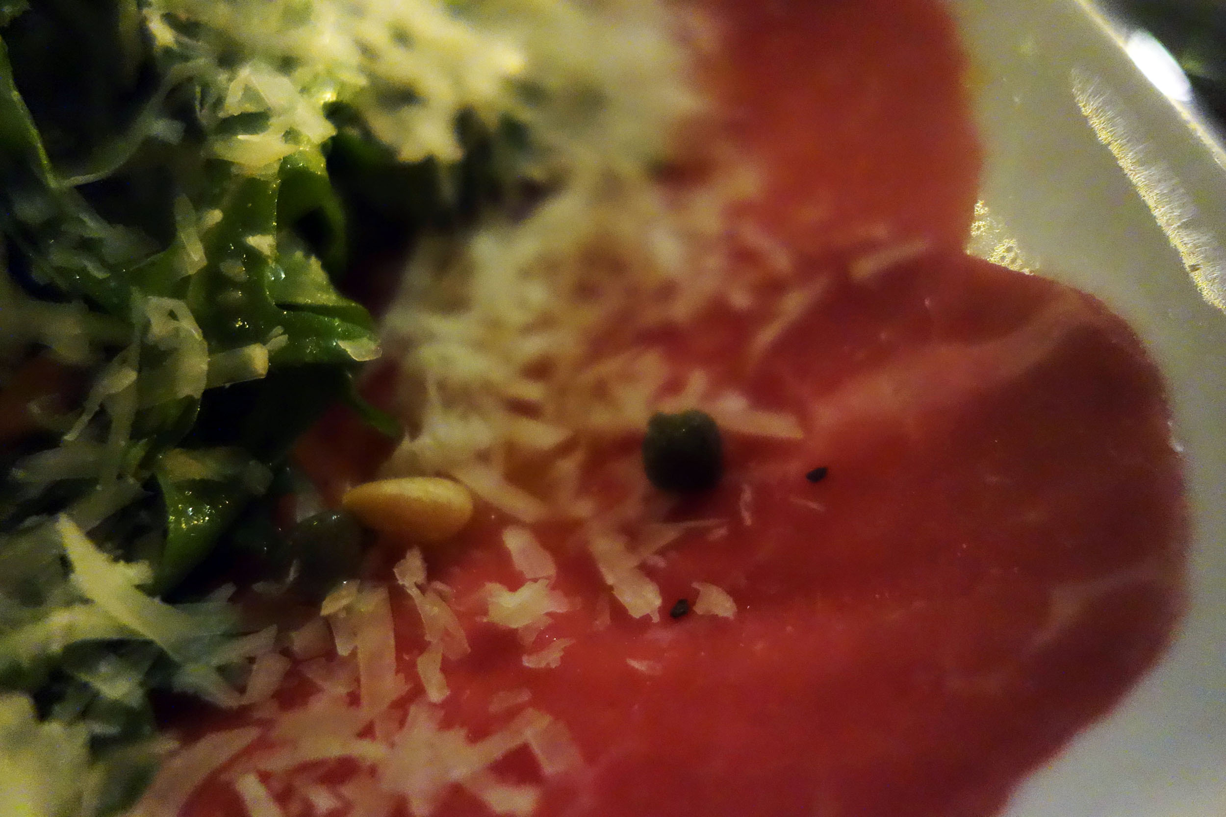 Buratta is to me what Beef Carpaccio is to my Belgian friend: a dish we can’t seem to get sick of, but love all the more each time we have it. This one came thinly sliced and ruby-red fresh with dainty shavings of smokey, sharp manchego melting over the top, some pine nuts adding a nutty, warm flavor to the meat. A mound of arugula in the middle made it a salad – scooped up with a piece of cool, tender flesh. Some capers also added a tang and contrasted well with the flavor of the pine nuts.
