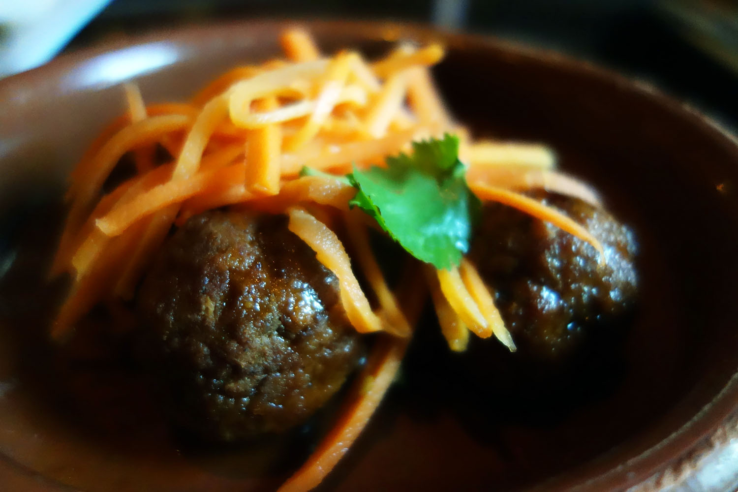 My dinner companion’s favorite dish was the Camagüey Meatballs, a type of albondigas popular in the city of Camagüey, Cuba. They were made very close to the classic way: a mix of beef, pork and pine nut served in a sweet-and-sour guava-based glaze. This one also came with a light slaw of pickled carrots. I did quite enjoy these meatballs, though I don’t remember tasting too much pine nut in the flavor profile; maybe these were added more for texture. The mixture of meats stayed nice and moist and had a peppery undertone which contrasted the mellow sweetness of the pork in there. There was also a hint of nuttiness not from the pine nuts but, I think, from the Cuban bread that the kitchen must have used as a binder (along with the classic egg and milk) for these little balls. The glaze was nice too, an Asian fusion thing with soy, sesame oil and white wine vinegar, along with the classic guava puree BBQ sauce served with these meatballs in Camagüey. The julienned carrots with their very light pickle were nice, adding a crunchy, fresh texture to the warm, mushy meat.