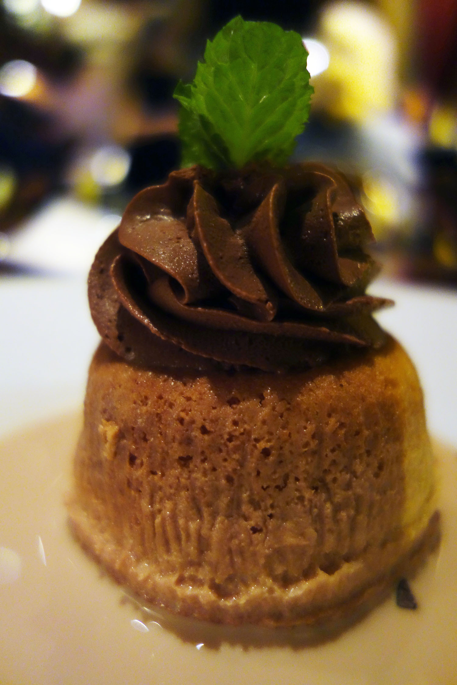 Next up, the Tres Leches, a vanilla-flavored sponge cake soaked in three different types of milk all flavored with dulce de leche, and topped with a mocha mousse. After almost a year of living in Argentina I thought I would never eat dulce de leche again unless physically forced to do so. I discovered through this dish that – to my great surprise! – I love and miss the deep, golden caramel flavor of d.d.l. The milks were saturated with the characteristic flavor of the latter and the cake was saturated with the milks, becoming mushy yet not soggy, moist but spongy, with just enough bounce. The bittersweet mocha “mousse” was okay, though the texture reminded me of the fake, sugar-flavored sugar frosting piped onto Disney Princess themed birthday cakes from chain bakeries. Otherwise, I appreciated that it was mocha in flavor and not just plain chocolate, as the bitter tang of espresso beans in there rounded out the caramel sweetness of the milks and brought the meal to a tasty close. By the way, did you know that the reason tres leches cake does not get soggy is because no egg is used and so air bubbles form, which can then be saturated with milk? I didn’t either until just a few minutes ago…