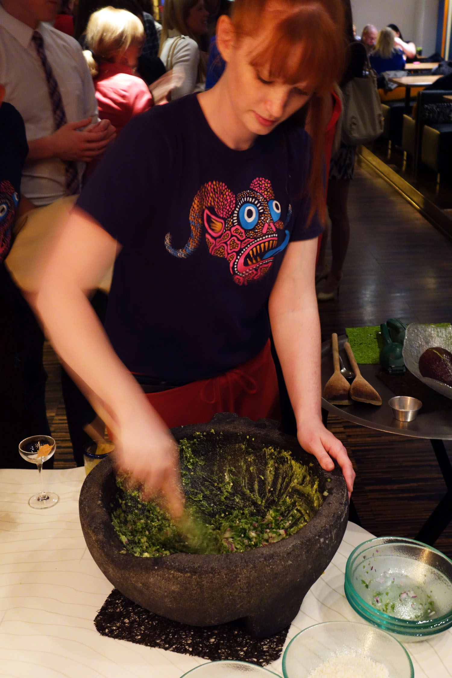 While the food and drink circulated at a rather modest pace, I did end up trying bite-sized previews of what’s to come at Oyamel for the Day of the Dead festival. I appreciated the creativity behind the dishes and the emphasis on veering away from the oh-so-many cliches associated with (the American perception of) Mexican culture. For example, duck is not something that appears on Taco Tuesday’s happy hour menus across the U.S. It was, however, one of the most appreciated proteins in pre-Hispanic Mayan and Aztec diets, along with turkey, duck, dove, quail, partridge and other small game birds. (A great source to learn these ingredients is the array of books written by Adela Fontes about traditional Mexican cooking.) Moles often confuse and overwhelm the non-Mexican chefs of non-authentic Mexican restaurants and so they’re usually of poor quality and left pretty much untouched instead of played with like they were in many of the dishes I tried that night. The cocktails showed a firm grasp of the concept behind different tequilas and the ways in which their different flavors can be exploited. A good night, an attentive and passionate chef, a wide and satisfied tequila-induced grin on my face.