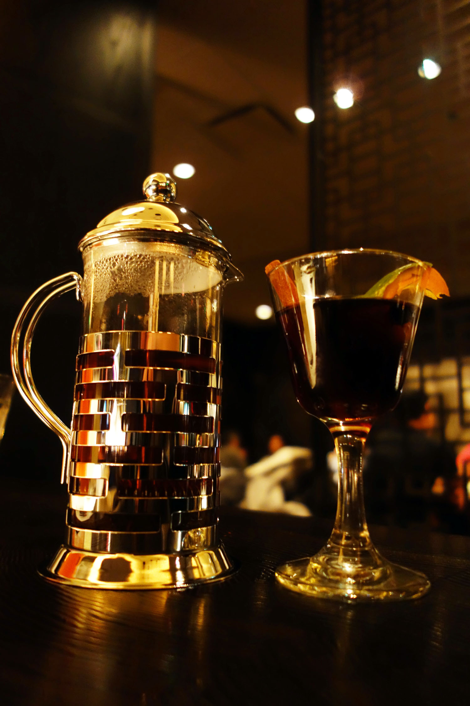 But my favorite item of the night was no doubt the Warm Winter Punch, which was a beautiful warm cocktail made with 18 year old Centenario rum Flor de cana, mulled wine, Punch Abruzzo with flavors of chocolate, caramel, clove and orange, some chocolate bitters and a triage of lemon, orange and lime zests. The warm, toasty flavors of clove and caramel infused the mulled wine and gave it a very cozy, festive touch, while the rum spiced it up and gave it a boozy kick. This base was paired with hot chocolate infused black tea served in a boiling pitcher for the guest to add however much he or she saw fit. I really cannot say enough good things about this one…
