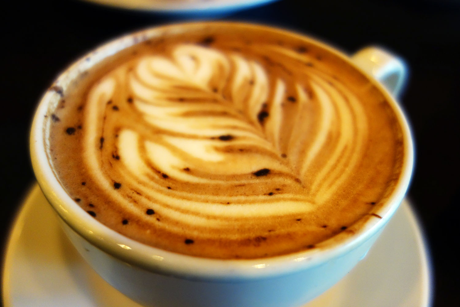 The able baristas at Simon’s take their latte art pretty seriously and each espresso drink comes with a wonderful rosetta or multi-tiered tulip carefully formed out of foam. I had a fantastically rich, dark mocha which was blended nicely, not too sweet in the least. The fluffy white milk froth was dotted here and there with specks of bittersweet cocoa powder that melted into patches, providing periodic boosts of flavor. The milk was steamed to a nice temperature too.