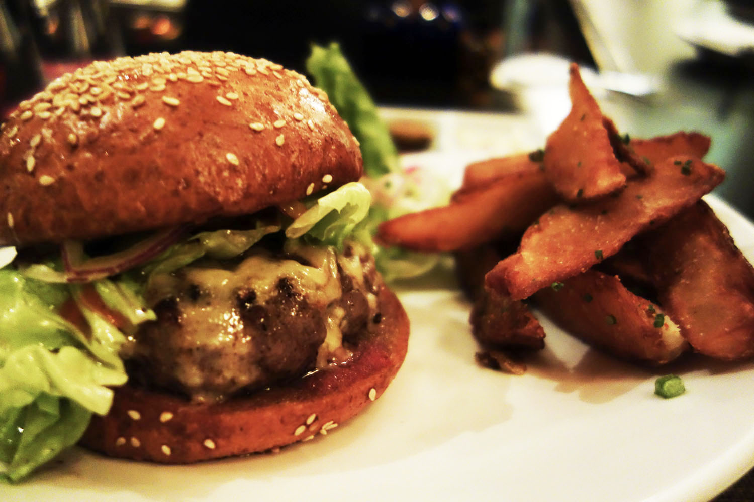 And then there’s the burger, which is good on its own but even better in that it is the most well known dish at a place that makes its own smoked rabbit sausage just to pop it into a pumpkin soup. The mums and I were lucky enough to nab the penultimate burger of the night. The patties were 86-ed a few seconds later when the guy next to us heard we had left one available and claimed it without hesitation. I’ve already discussed ad nauseam the what and the how when it comes to the Craigie burger – the marrow fat, suit, dry miso and “fluffy” grind. Sear drippings are preserved and sprinkled atop the bun, the lettuce is dressed in the grill sweat as well. And it all shows. The meat looks a healthy red even when cooked to medium and the juices flooding the mouth with each bite have enough flavor to stay on one’s palate for hours, if not days. Celery root slaw, red wine pickles and homemade ketchup offer up their flavors and textures, but typically end up eaten as a side rather than actually placed atop the already pretty stellar patty. The steak fries are beefy and crispy all throughout without a hint of extra grease or the burden of clumpy starch. Wonderful always and still cool despite getting nerdy with its ingredients.