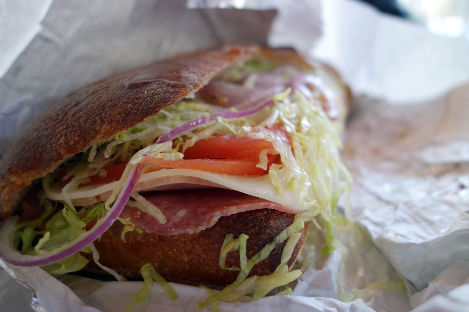 Stachowski’s claim to fame in the sandwich department is their monstrous Four Meat Grinder. A canoe of crunchy, hearty Italian bread stuffed with a foursome of the deli’s house meats: soppressata, salami, coppa and a buttery mortadella. There is also a mild provolone, ribbons of pickled red onion, spicy jalapeño, tomato, lettuce and some oil and vinegar splashed on. The sandwich is a cold one, with the acidity of the onions and the heat from the jalapeño cleaning the mouth of the fatty notes from the cold deli meats. The latter blend very well, with the more cured, salty meats compensating for the milder ones. I appreciated that the cheese was provolone and not anything sharper because it allowed the meats to shine and offered a nice textural canvas for their flavors to be projected on.