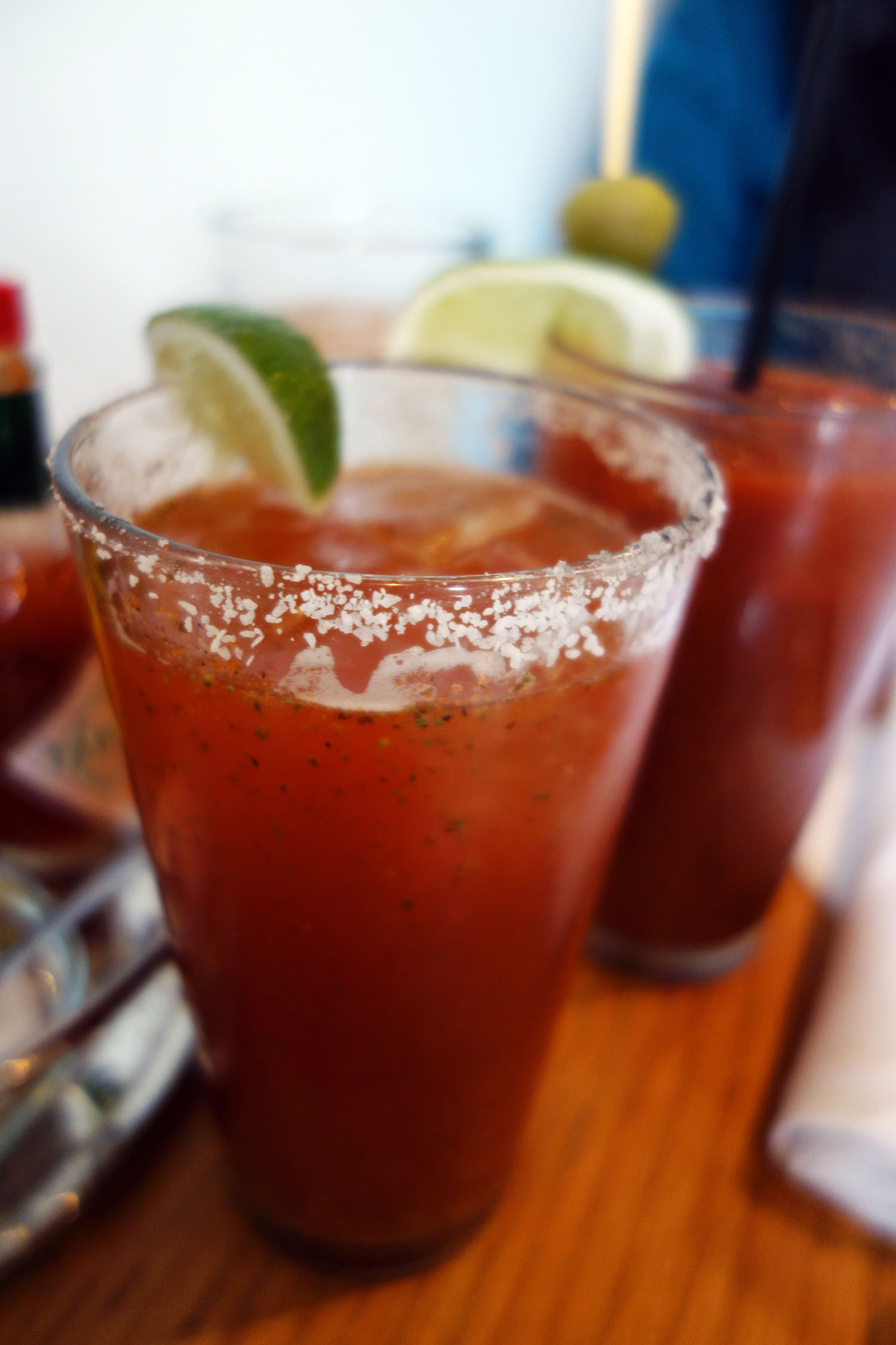 Hank’s is more accessible than I had first thought. I had called ahead to make a reservation a few hours prior and arrived at the door expecting a line of hungry brunch-goers, perhaps with mimosas in hand to ease the wait. It was by no means dead, but we were seated immediately and ordered our Micheladas and Bloody Marys to start. Both salt-rimmed, both containing slightly spicy, house-made tomato juice mix. One had vodka, the other a Lagunitas beer and an extra bit of lime juice for freshness. Neither was anything spectacular and my Michelada was actually somewhat watery – a fizzier brew could have been used, or perhaps the ratio of beer to tomato juice was off. They hit the spot nonetheless and fed the flames of hunger, until we were both on the verge of requesting oyster crackers to munch on as we waited for our food. But the crackers came on their own, along with a half dozen freshly shucked babes on a tray of ice. Red wine vin, grated horseradish, cocktail sauce, and an attentive server who carefully pointed out which oyster was which.