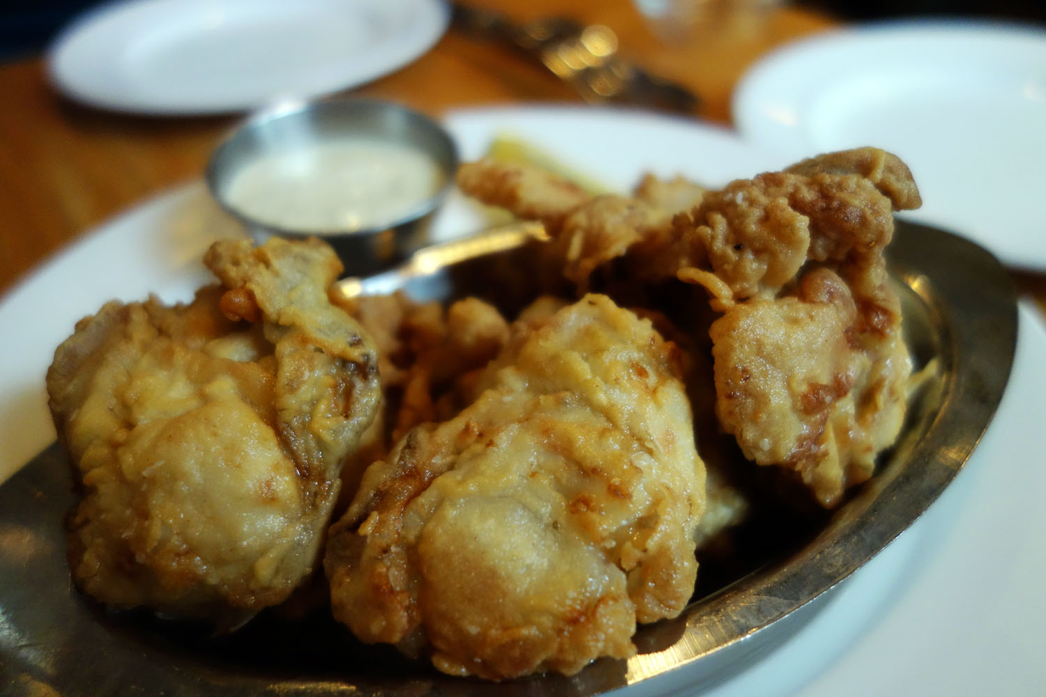 As was explained to me at Hank’s one of the secrets to their fried oysters is that they soak them in buttermilk before coating them for frying. I noted you said you did not try the tartar sauce. I urge you to give it a try next time. Along with the best fried oysters I’ve ever had their tartar sauce is also the best ever. The secret to it is that it continues some pulverized capers.