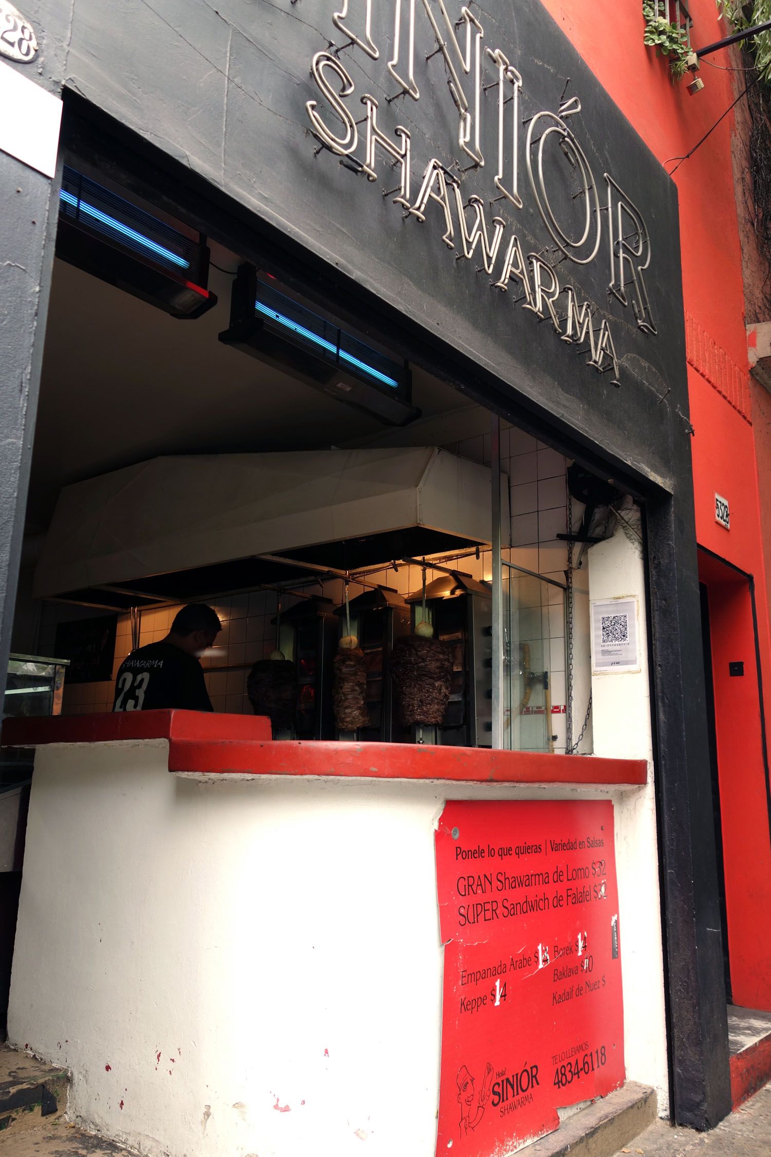 It is a tradition for Kika-goers to come here for a warm palmful of shawarma in pita along with the last beer of the night. It’s probably the last place to sell the latter. Hunks of chicken, beer and lamb spin seductively on a spit drawing wandering eyes and making mouths water. It’s like a naughty late-night peep show across the window. They also sell things like “empanadas árabes,” börek and kibbeh but nobody ever really gets these. It’s all about the shawarma and the myriad of toppings – colorful sauces and chopped veggies, yoghurt, tahini and guac. It is a messy, juicy, warm meat sandwich held directly in hand with sauces overflowing and staining hungry face that really breathes life into a body that has had one too many shots of whiskey. Customizing it just adds to the appeal, allowing customers to play by their own rules. One sandwich costs $32 or $34 pesos ($4-ish USD), which is relatively cheap even by local standards if considering the amount of protein packed in. And the location really cannot get any more ideal.