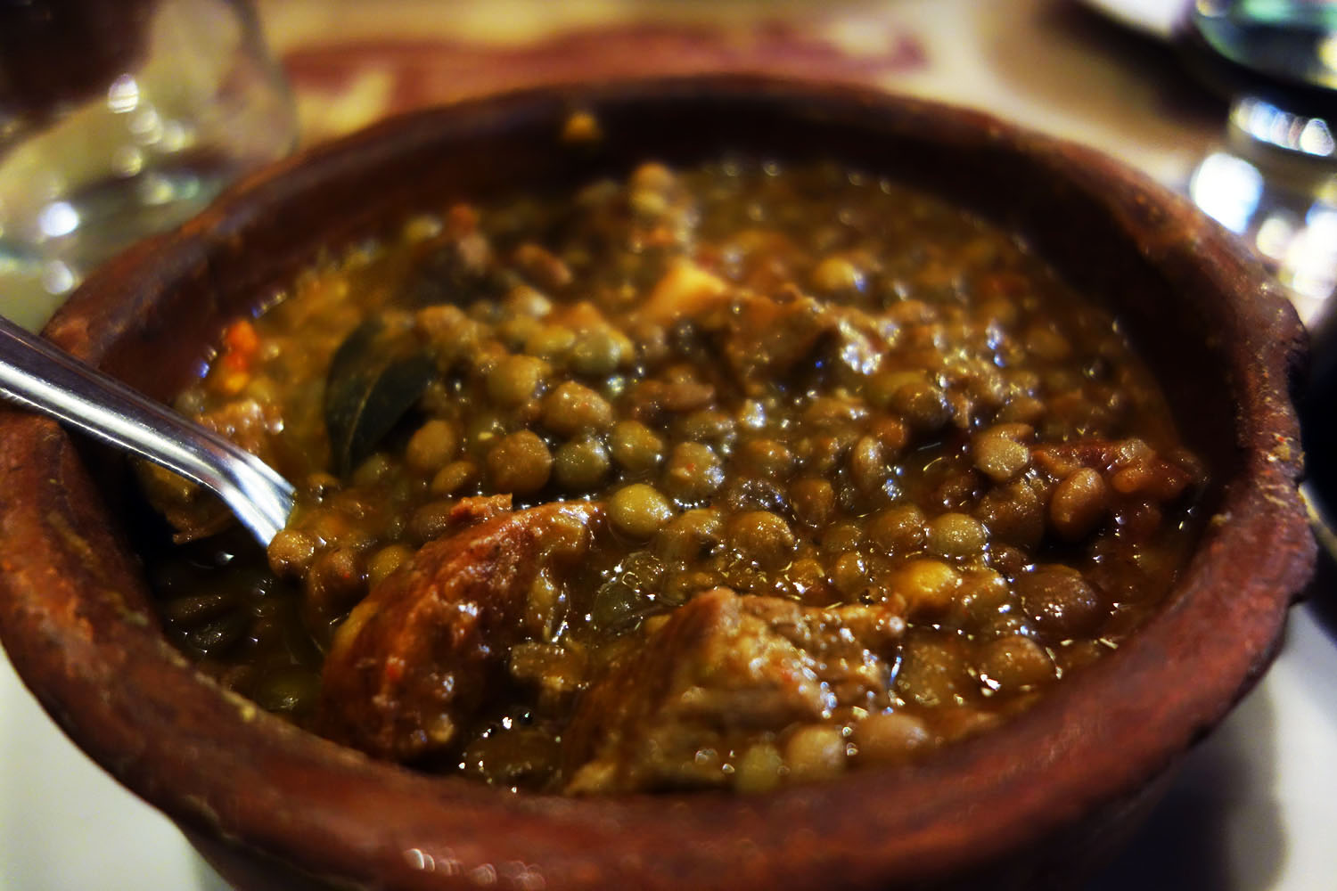…the lentils! Oh the lentils at El Sanjuanino… My dinner companion and I could not stop talking about these, even days after the experience. I’m not really surprised he liked them and it’s not just because they were downright perfectly made. I’ve never met an Argentine male who hasn’t had a strong affinity to this dish. The most proper, Polo-toting porteño transforms into a trembling, wide-eyed puppy at the mention of lentejas. Just one spoonful of this rustic, earthy pot of goodness melts the most urban man-about-town into a puddle of affection. Maybe it’s a grandma-grandson thing, as it is in Hungary where nagymama’s often prepare it for their hungry, bunchy sweater wearing grandsons to warm them on cold winter afternoons. In the States grandma’s make casseroles and apple pie, not lentils. Only the most stylish of Brooklyn hipsters eat the stuff and they do so with irony and faux humility. They do it at some vegan restaurant where a bowlful cost $8.00. It makes no sense.