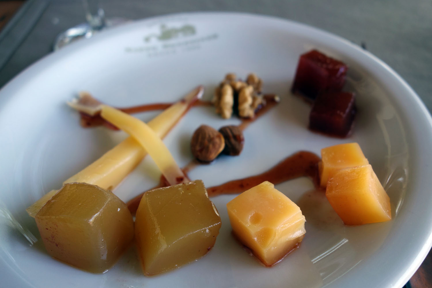 The meal was wonderful up until the dessert, which was mediocre at best. The concept of a cheeseboard over some kind of cake was great but the cheeses chosen were not of good quality. There were three little cubes of some sort of cheddar and 2 very hastily chopped pieces of Swiss. They didn’t seem very freshly carved and actually tasted a bit processed. These were served with a few almonds and walnuts that hadn’t even been toasted, along with cubes of maracuyá (passion fruit gelée) and batata (sweet potato gelée). The maracuyá chunks resembled gelatinous cranberry sauce sliding right out of the can, while the batata was starchy and thick, too glossy to have been home-made. It’s a bummer because I’ve had some wonderful home-made cheeses in Argentina. Batata is usually smooth and creamy, packed with the natural dulzor of sweet potato. Maracuyá is usually tart and fruity with a slightly sweet finish. In this case, the latter was just acidic, and even the syrup made from it was elementary in flavor.