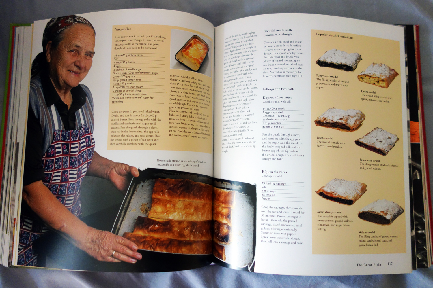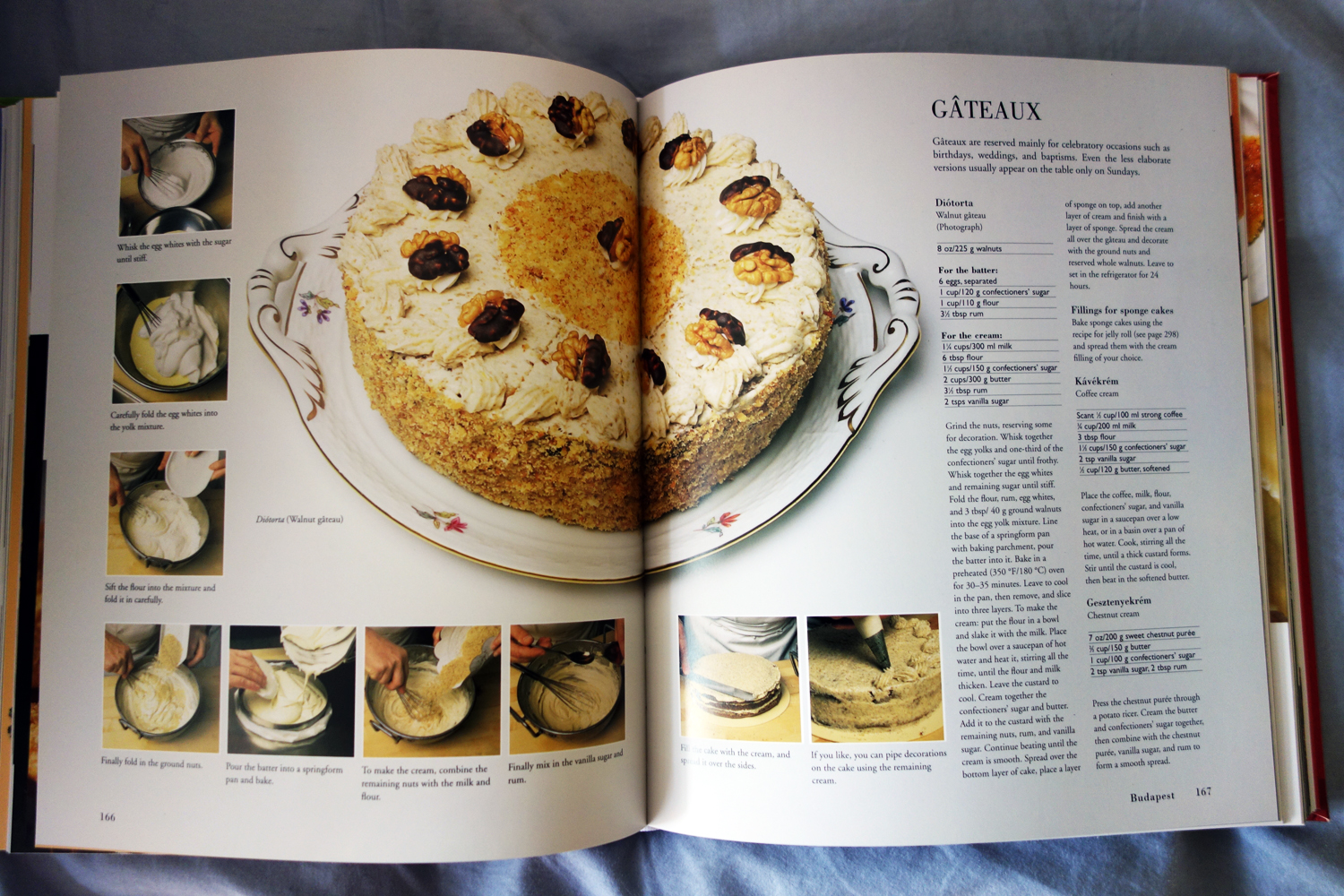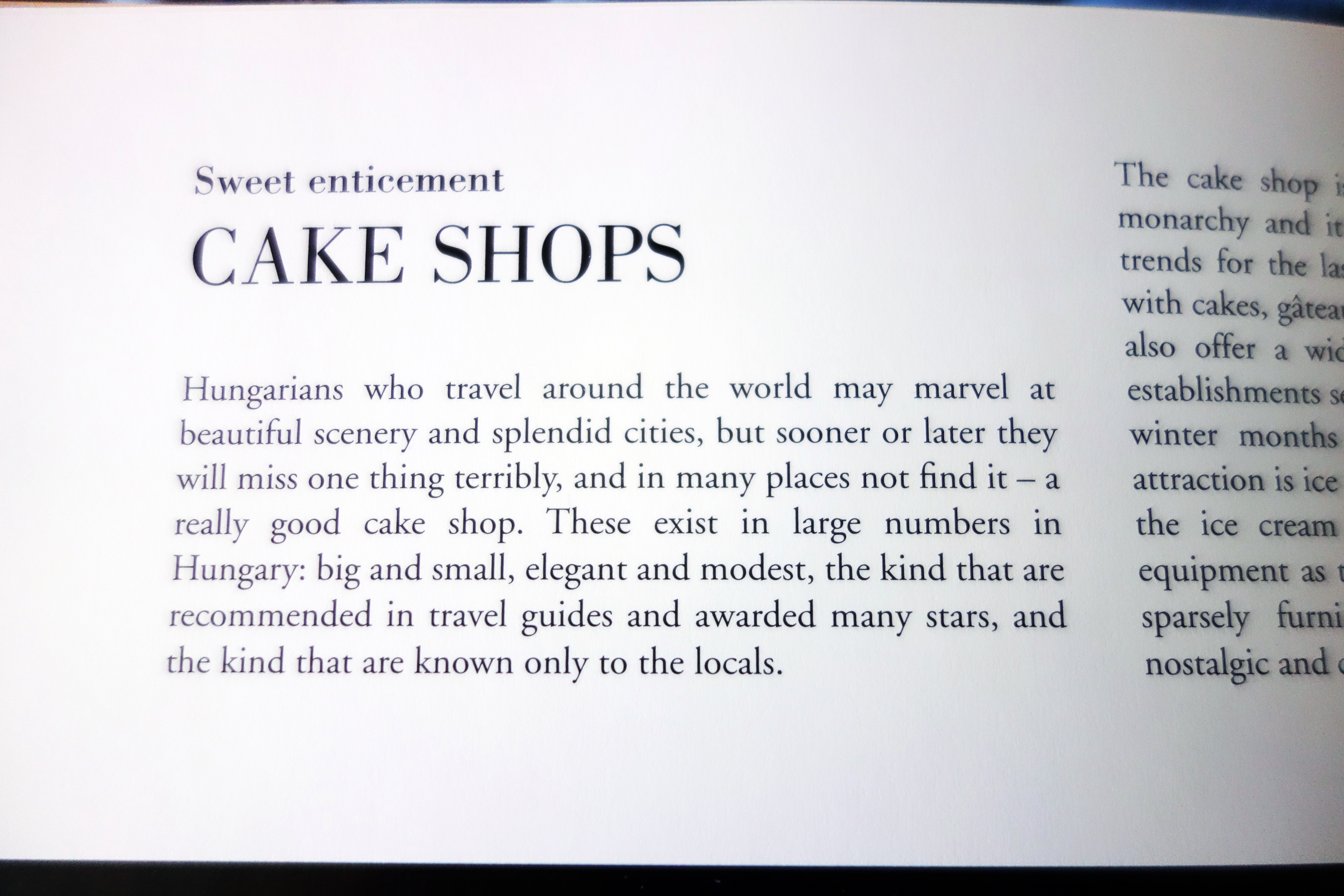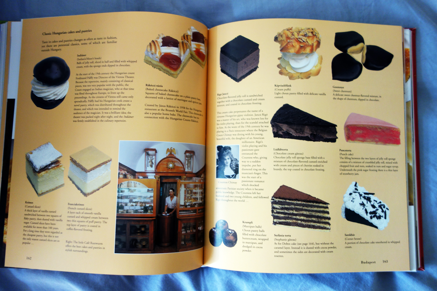 But there wasn’t really anything appealing in there. The pastries looked glossy and fake and tired at 10 o’clock on a Sunday morning, in the exact hour they should’ve probably look their best. The harsh white backlight probably didn’t help their appearance too much. Neither did the fact that they were just kind of piled onto shelves instead of towered for aesthetic purposes. There were about 5 classic French things there – pain aux raisin, some bichon or another and savory viennoiseries. But otherwise it was all fake-ass red velvet cupcakes, banged up macarons and iced cookies that looked a bit too home-made (in a bad way). I left kind of sad, though in good spirits, as I was in good company. When I got home I uncovered a book that has been dusting away in a pile on my living room table, “Culinaria Hungaria,” given to me by my sister-in-law the last time I saw her. I glossed over the pages and landed on one particular chapter, the introduction to which read the following: