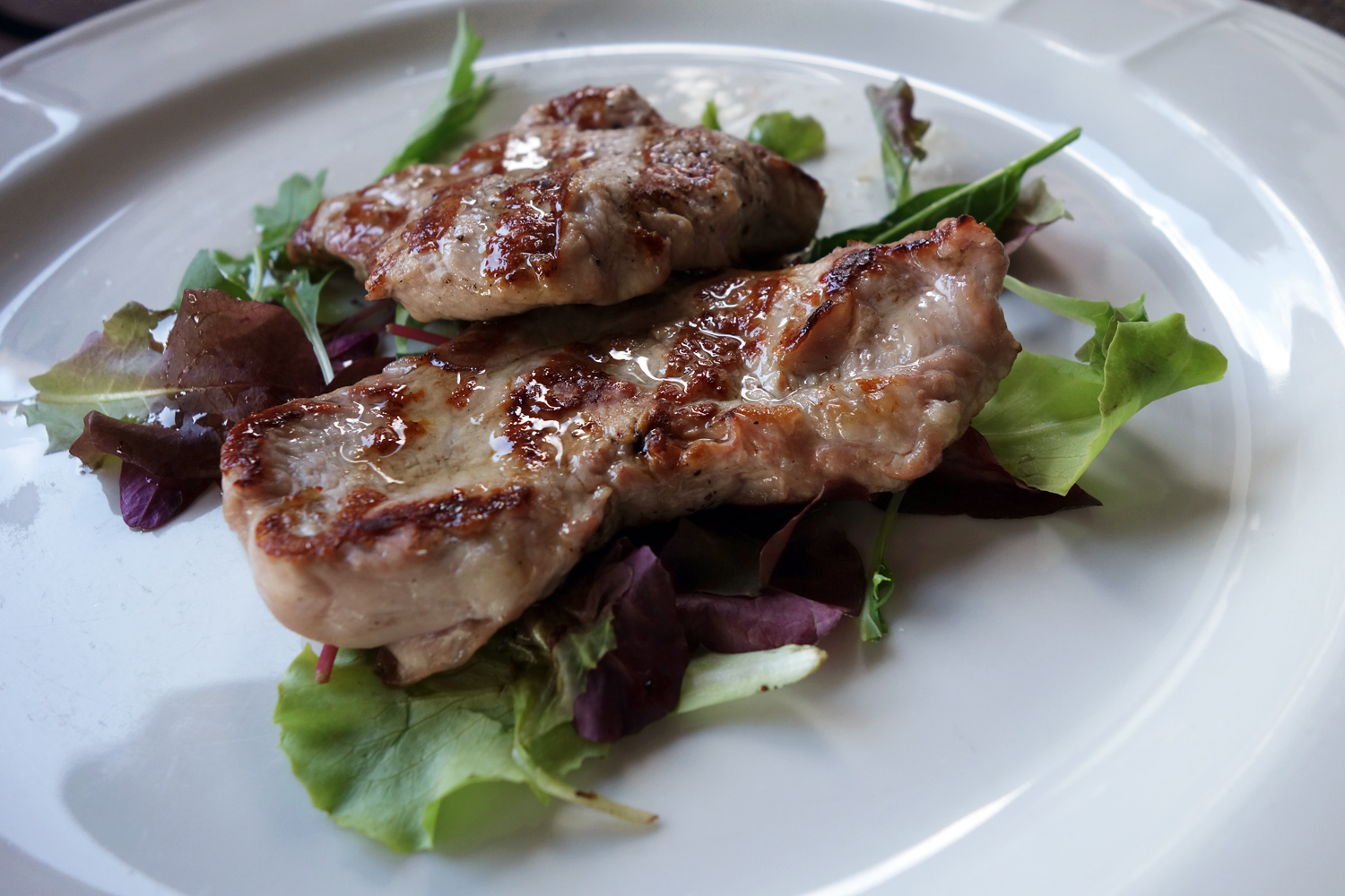Menu 2 had a slightly smaller portion of veal on a bed of greens referred to on the menu as a “salad.” I could’ve used a slice of tomato or two. The smaller bits of veal were just as juicy and tender as the larger steaks, even later that night when we ate them, chopped into bits with a side of bread.