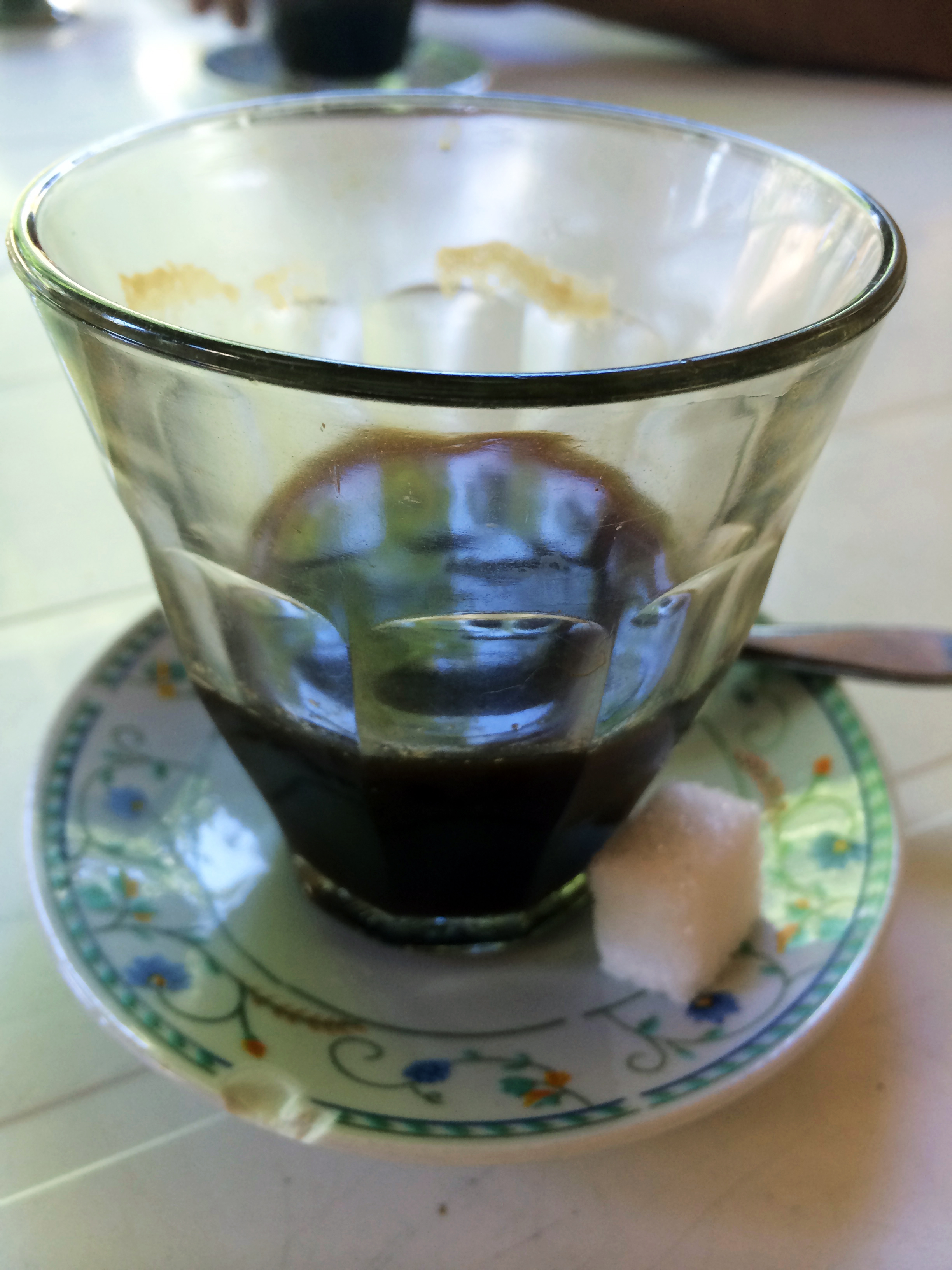 The coffee was bitter and powerful. No silky crema, no thick core but a nice dark roast and one that woke all three of us up, violently. A nice surprise was that it came in the old-school 60’s glass espresso cups that my parents are very fond of but which they, unfortunately, cannot find anywhere these days. Above is a photo of the glasses at the néni’s (left) and a photo of my mother’s espresso glass (right). She’s grown so accustomed to drinking out of it that she brings it with her on trips, along with a ziplock bag of Nescafe (a.k.a. the worst coffee in the world). Countless times have I seen her push the Nespresso and its pods out of the way only to stir that murky little lagoon of muck sleepily until it becomes homogenous enough to swallow. *Sigh* Eastern European parents…