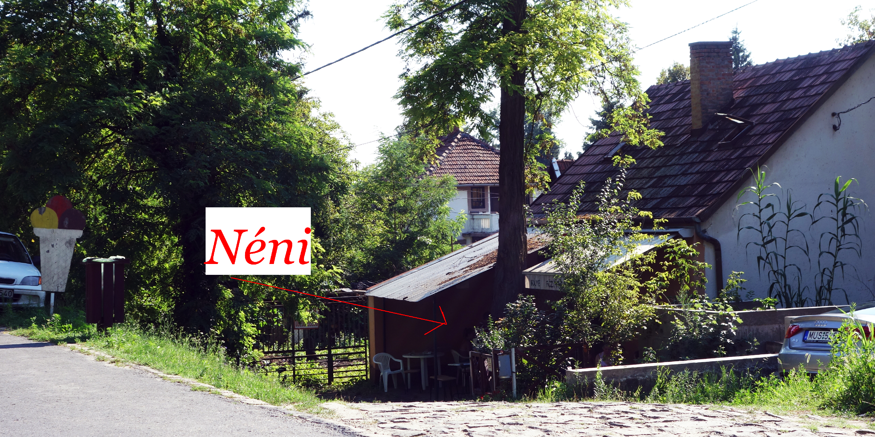 In the village of Horány on the southern tip of Szentendre Island, which floats in the Danube between the Danube Bend and Budapest, there is an older lady referred to by most as “the néni.” The néni runs a cafe at the bottom of a path leading up to a riverbank that is used as a beach in the summertime. The cafe is somewhat hidden, save for a large cardboard ice cream cone that marks the entrance. My brother and his wife have been to visit the néni quite a few times and on a recent trip to the Bend they brought me along.
