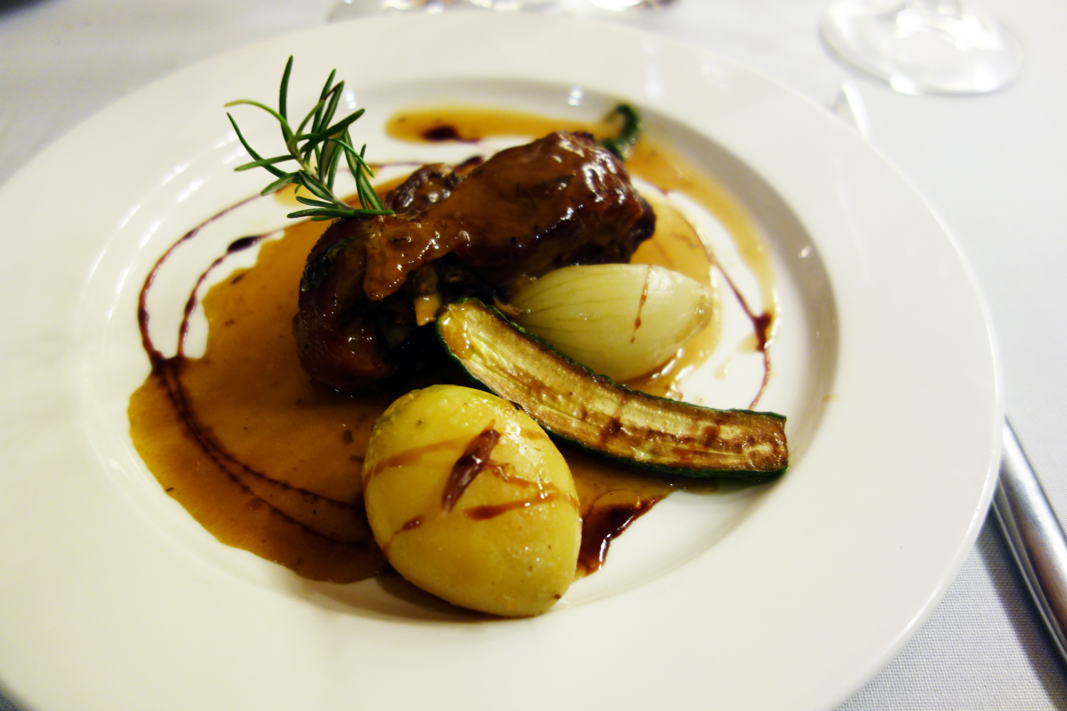 We threw off the natural order of things by strapping on a cheese course last minute. It’s not something to miss. Some local favorites are displayed along with homemade jams to pair with. There are two cow’s, two goat’s and two hard sheep’s milk cheeses, with varying degrees of flavor and pungency. My favorites were the second cow’s milk cheese, the stinkiest of the plate, and the crumbly goat cheese with its bright white paste and mold-studded rind. The jam made of sweet, ripe pears was perfect to pair to the saltier of cheeses .
